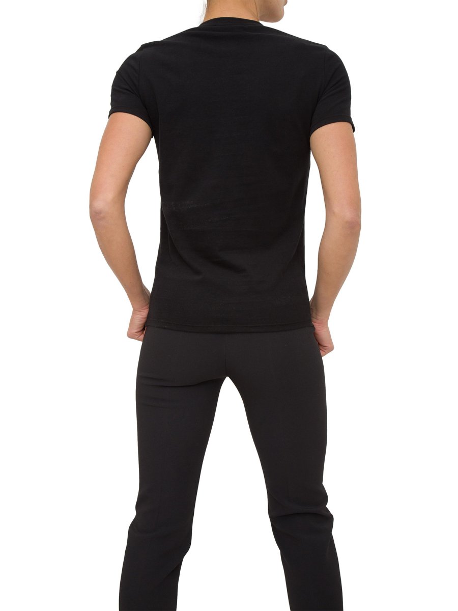 T-shirt in jersey di cotone leggero impreziosita da un accessorio con charms logo in metallo dorato sotto lo scollo.
