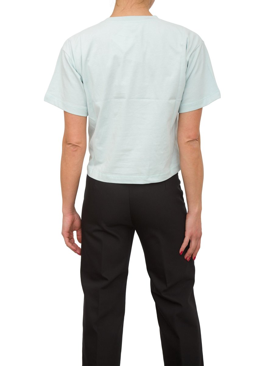 T-shirt cropped in jersey di cotone leggero con logo ricamato a filo impreziosito da charms in metallo dorato.