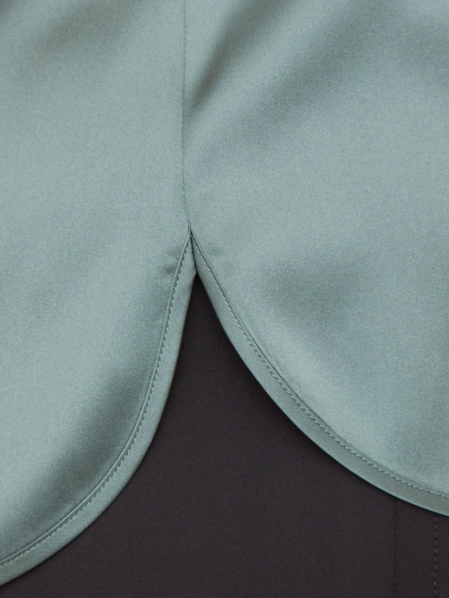T- shirt in pregiato raso di pura seta stretch, caratterizzata da una silhouette fluida, con scollo a giro e maniche corte.