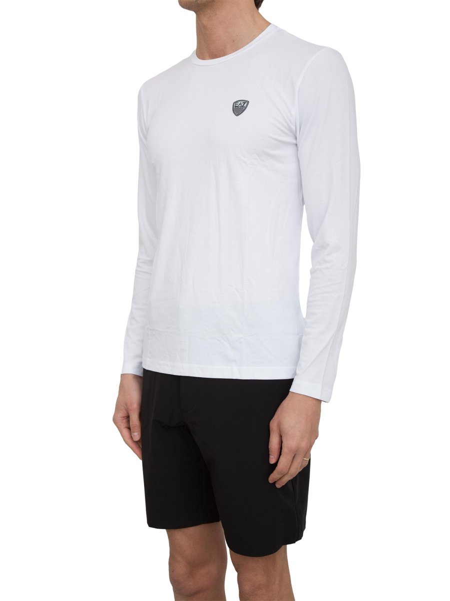 Футболка с круглым вырезом и длинными рукавами из эластичного вискозного трикотажа, украшенная логотипом EA7 с металлическим эффектом. Универсальная и удобная одежда, идеально дополняющая спортивный образ.