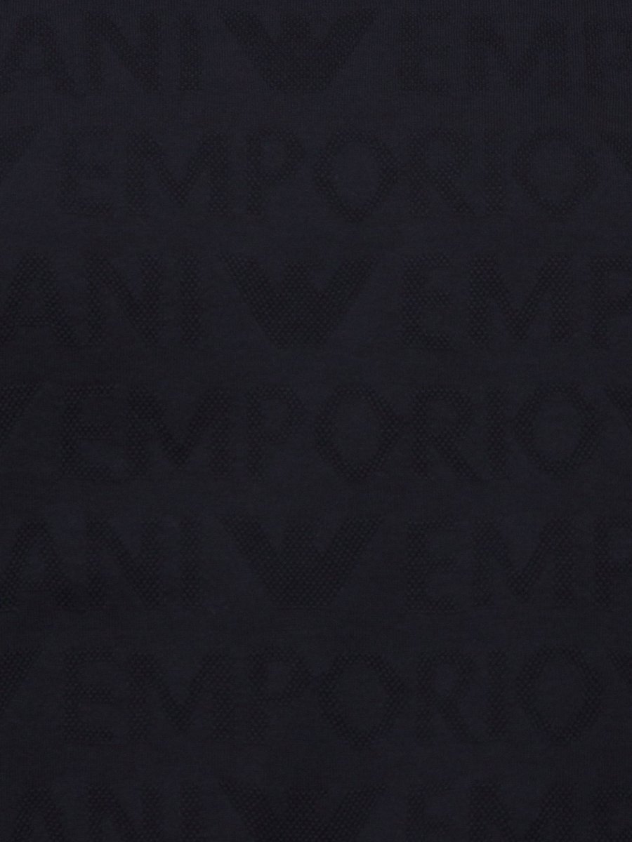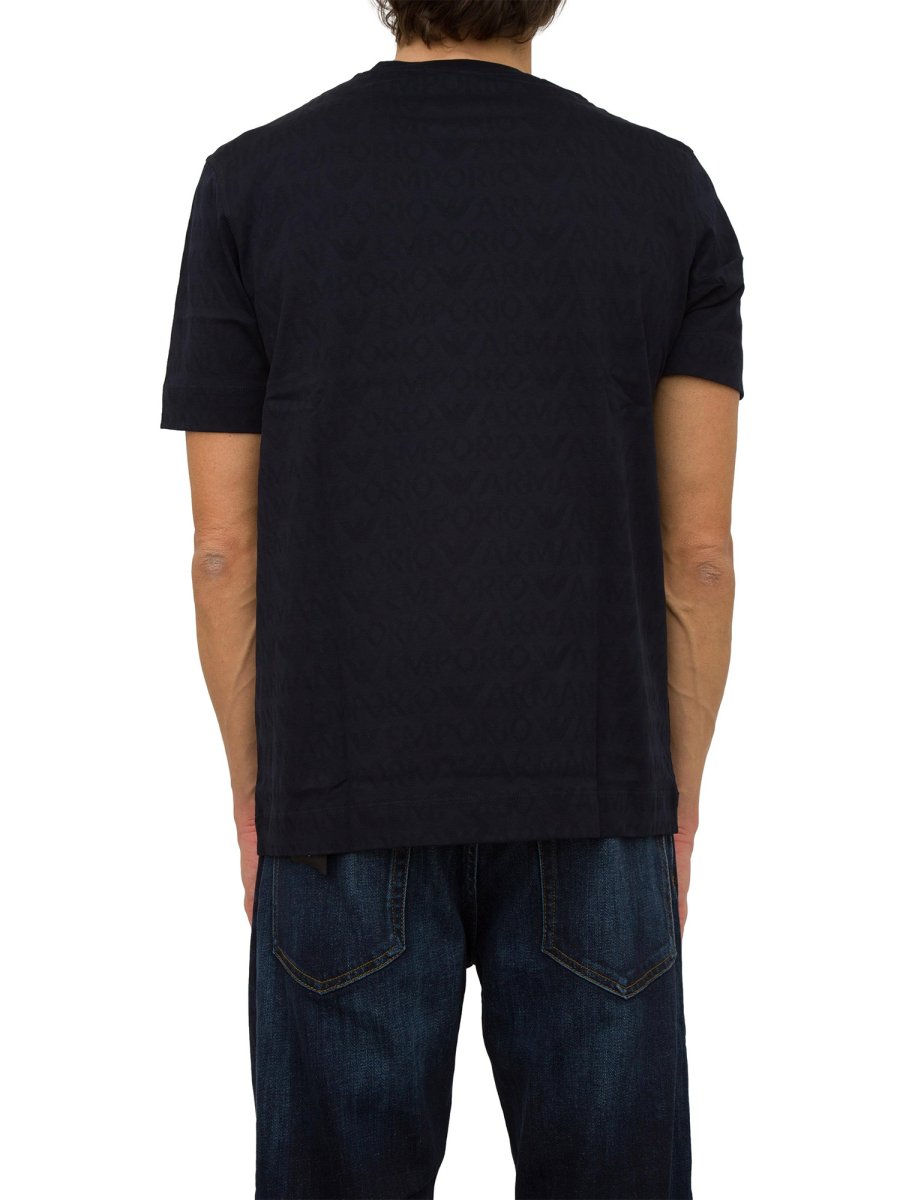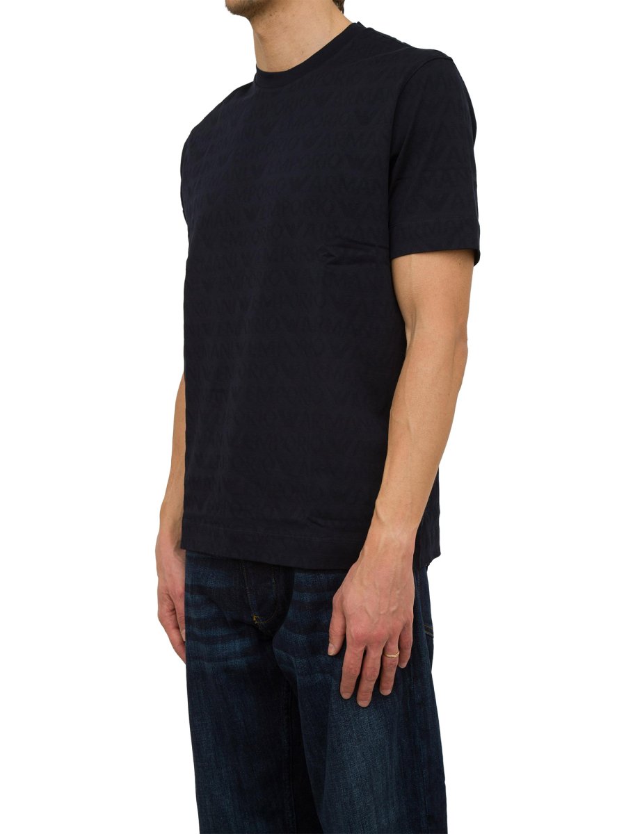 T-shirt girocollo realizzata in jersey di puro cotone jacquard. La texture si caratterizza per la fitta fantasia tono su tono che mostra logo lettering all over.