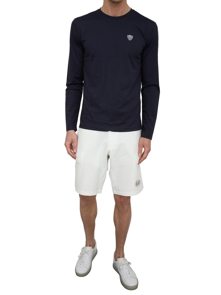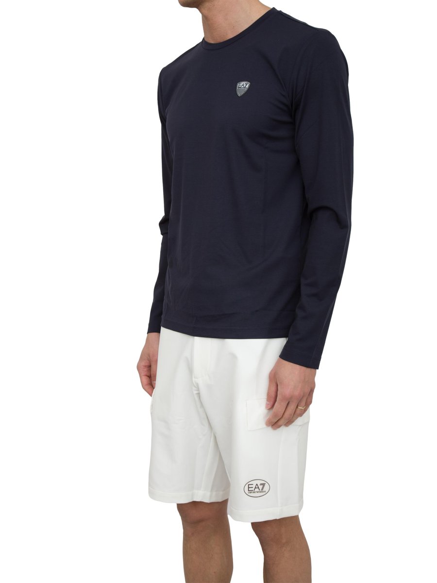 Футболка с круглым вырезом и длинными рукавами из эластичного вискозного трикотажа, украшенная логотипом EA7 с металлическим эффектом. Универсальная и удобная одежда, идеально дополняющая спортивный образ.