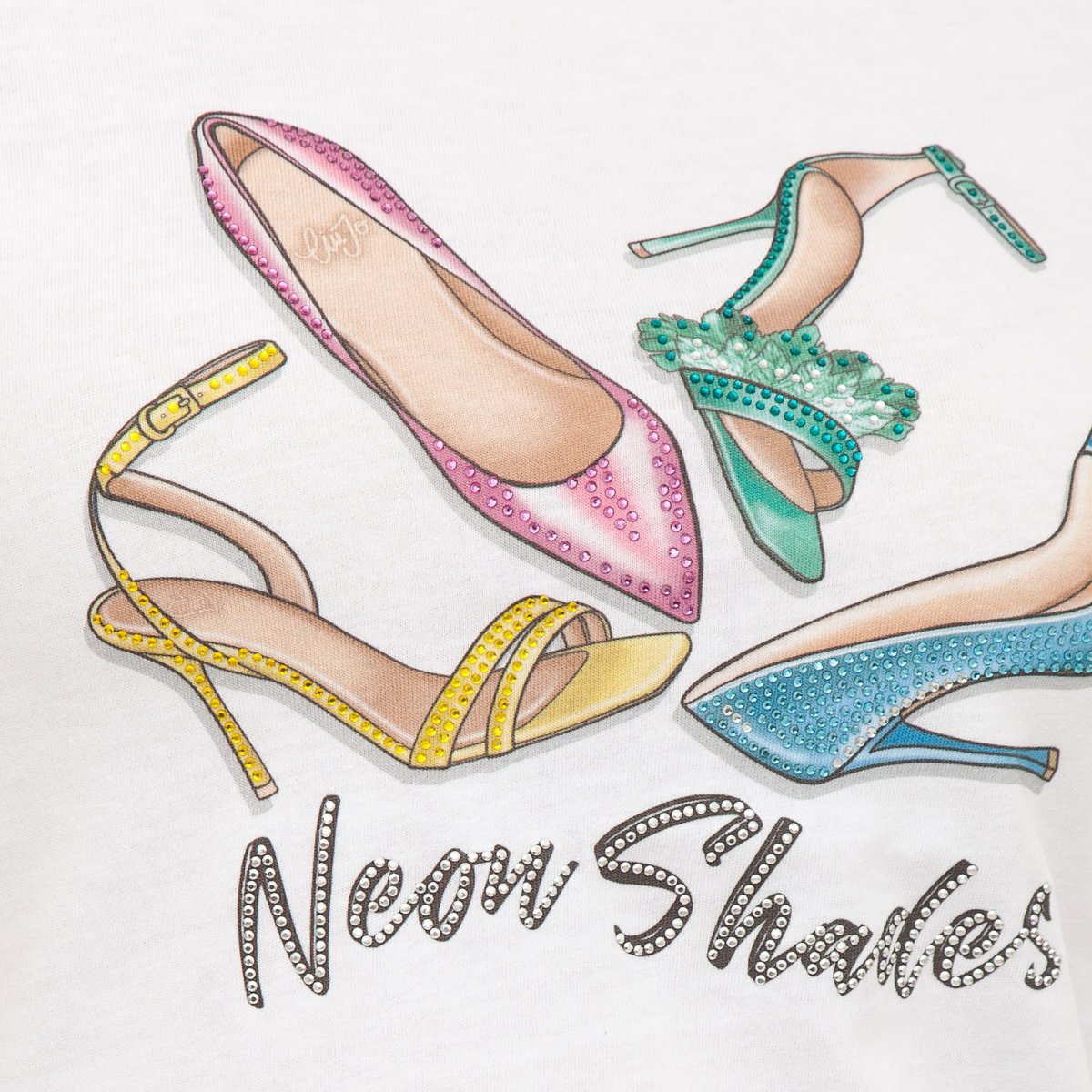 T-shirt in cotone, stampa grafica Shiny Shoes con strass, scollo rotondo e maniche corte. Made in Italy