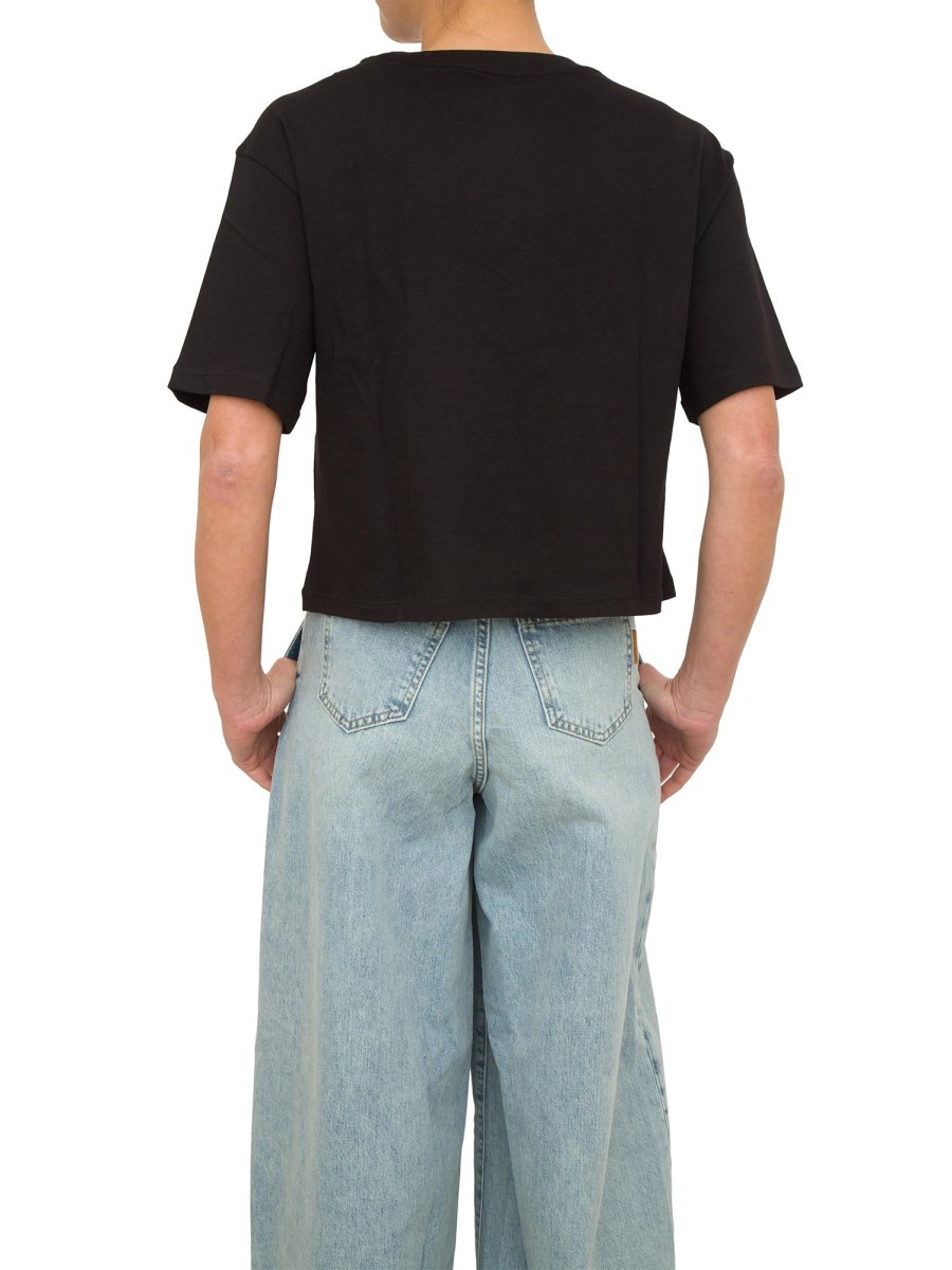 T-shirt cropped realizzata in tessuto organico con etichetta logata, collo tondo e maniche corte.