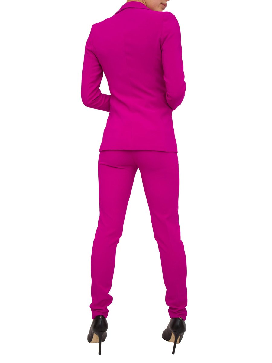 Elegante tailleur Kocca composto da giacca a un bottone con scollo rever e tasche a filetto e pantaloni di taglio classico.