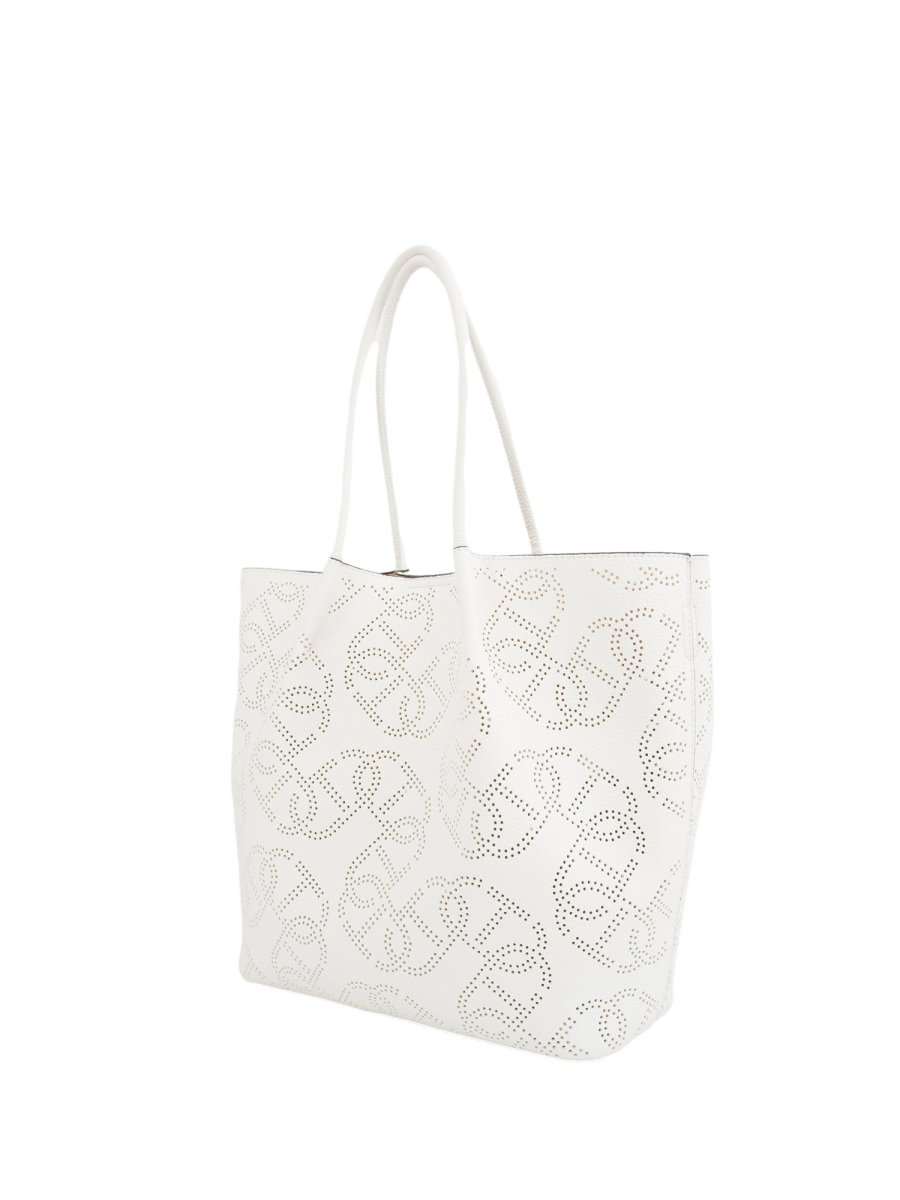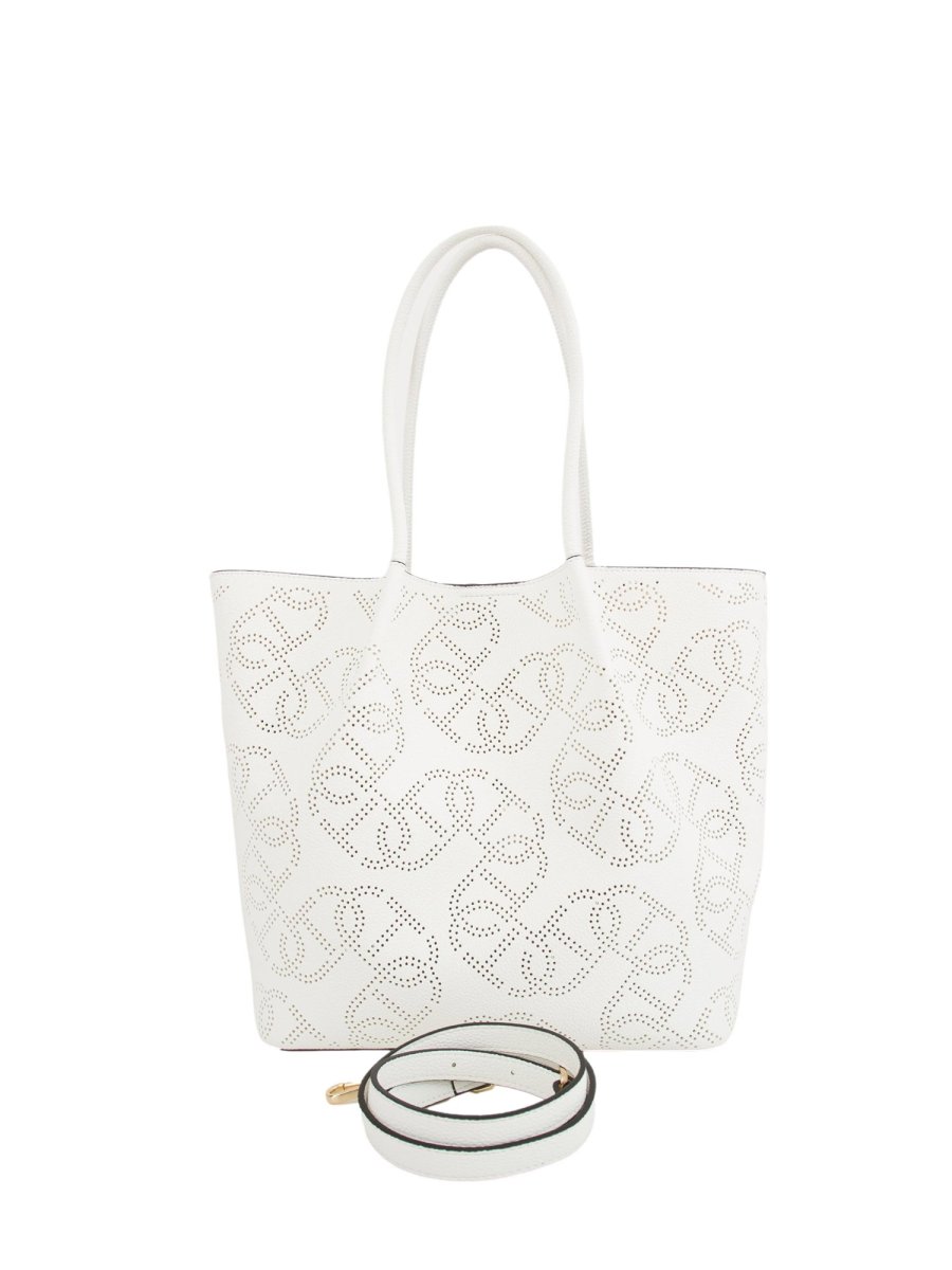 Женская сумка-тоут Twinset из экокожи с двойной ручкой, перфорированным логотипом в виде овала Т по всей поверхности, клатчем, контрастной внутренней частью и съемным регулируемым плечевым ремнем. Идеально подходит для всех ваших летних образов. Размеры: 29 х 30 х 12.