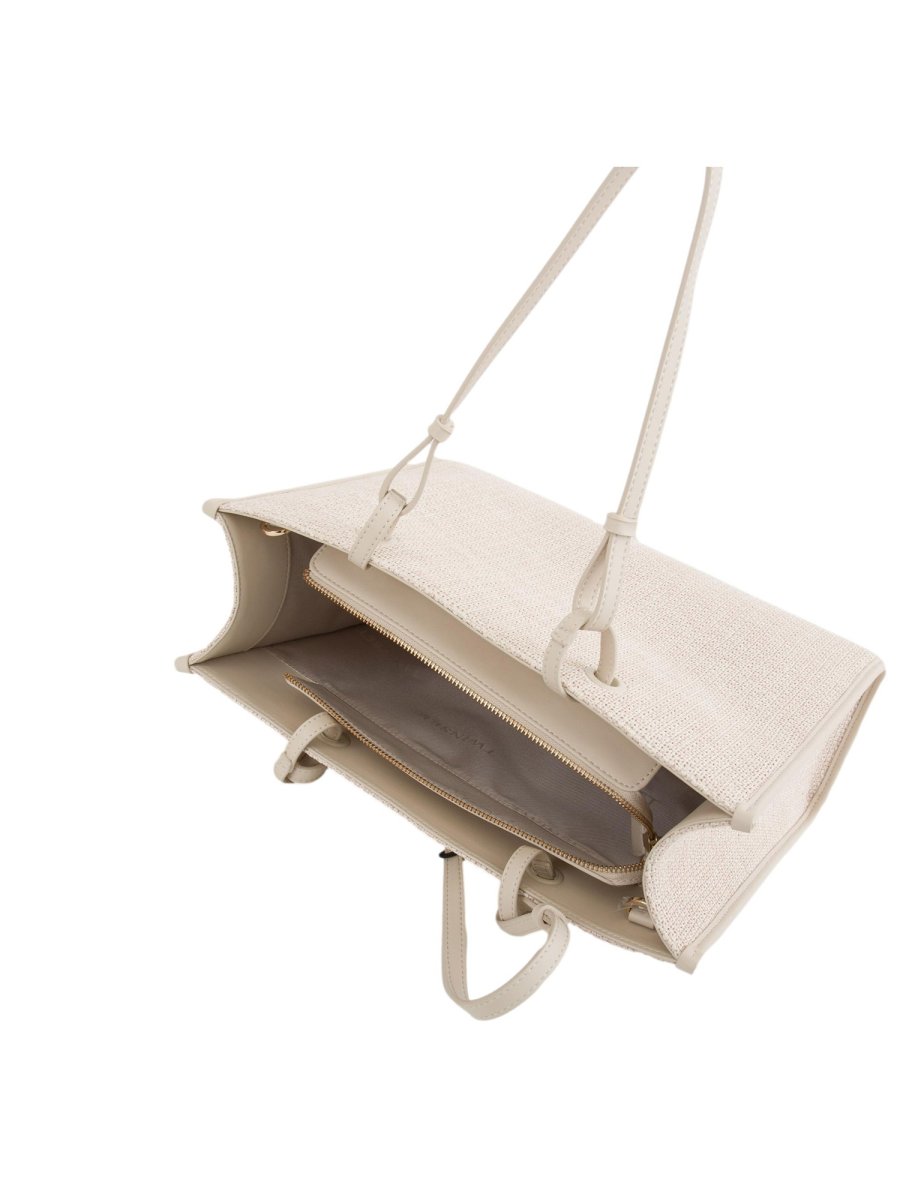 Сумка для покупок, выполненная из холста, с застежкой-молнией, двойной ручкой через плечо. Размеры: 36 x 28,5 x 11 см.