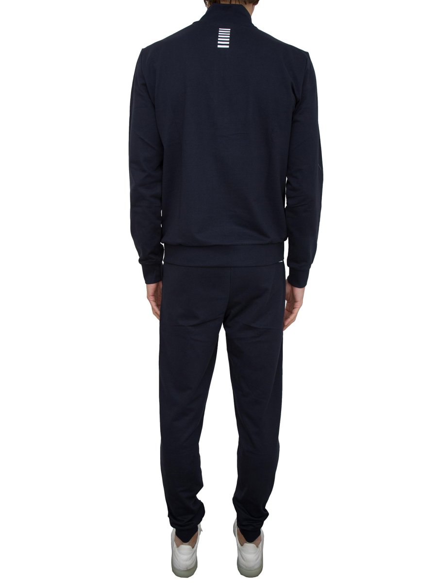 Спортивный костюм EA7 сочетает в себе комфорт и динамичный стиль, обеспечивая комфорт во время занятий спортом и в моменты отдыха. Модель выполнена из мягкого хлопка и состоит из толстовки с высоким воротом, застежкой-молнией, карманами и эластичными вставками, а также брюк-джоггеров с кулиской на талии, карманами и эластичным низом на щиколотке. Изделие является частью коллекции Core Identity, которая сохраняет свой простой и чистый вид, а логотип EA7 с матовым эффектом характеризует изделия.
