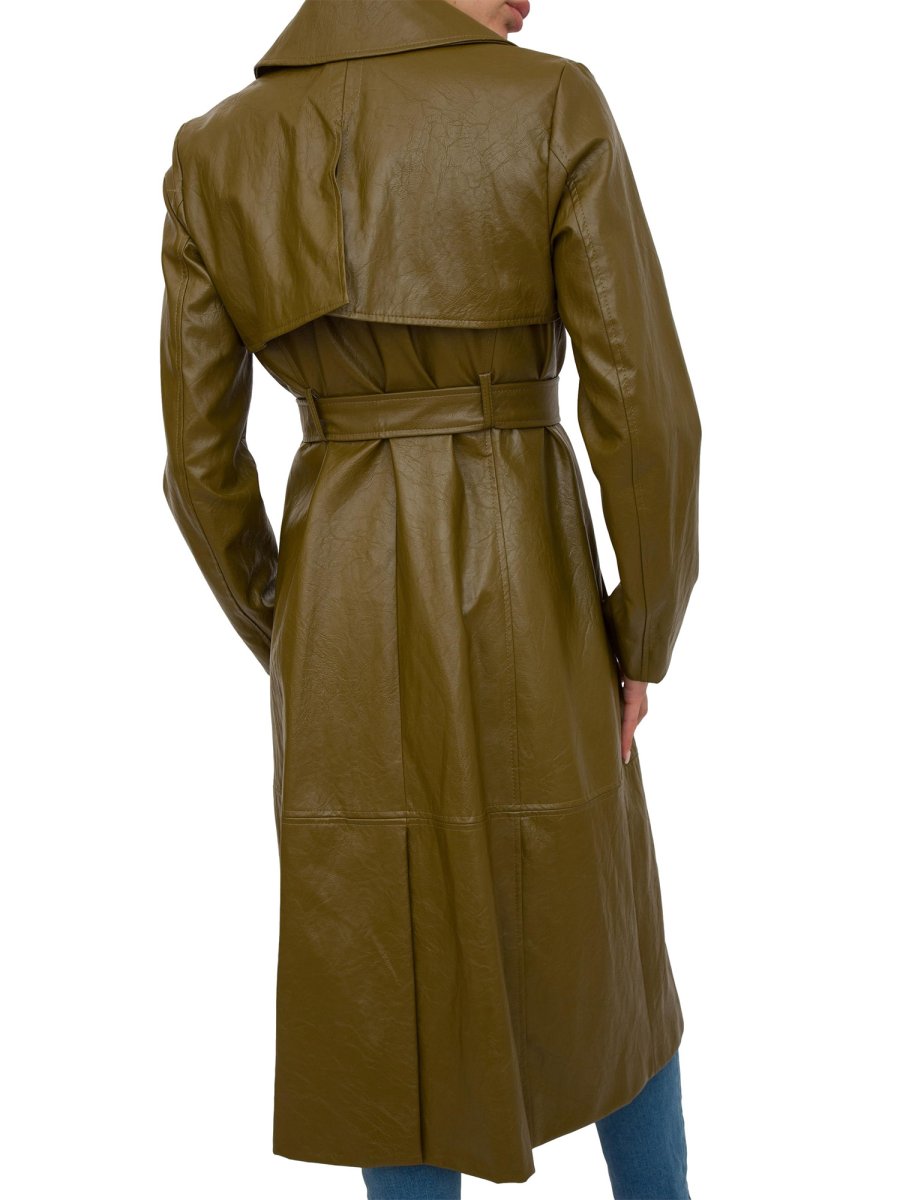 Trench in tessuto spalmato effetto leggermente stropicciato, linea leggermente sfiancata. Collo a rever, maniche lunghe. Chiusura a doppiopetto, tasche a filetto. Spacco centrale sul retro. Foderato. Cintura coordinata.