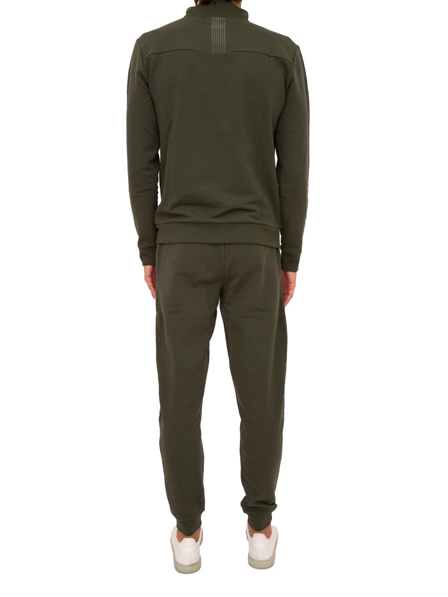 Tuta sportiva da uomo EA7 realizzata in misto cotone reciclato, si compone da una felpa con zip e da un pantalone jogger.