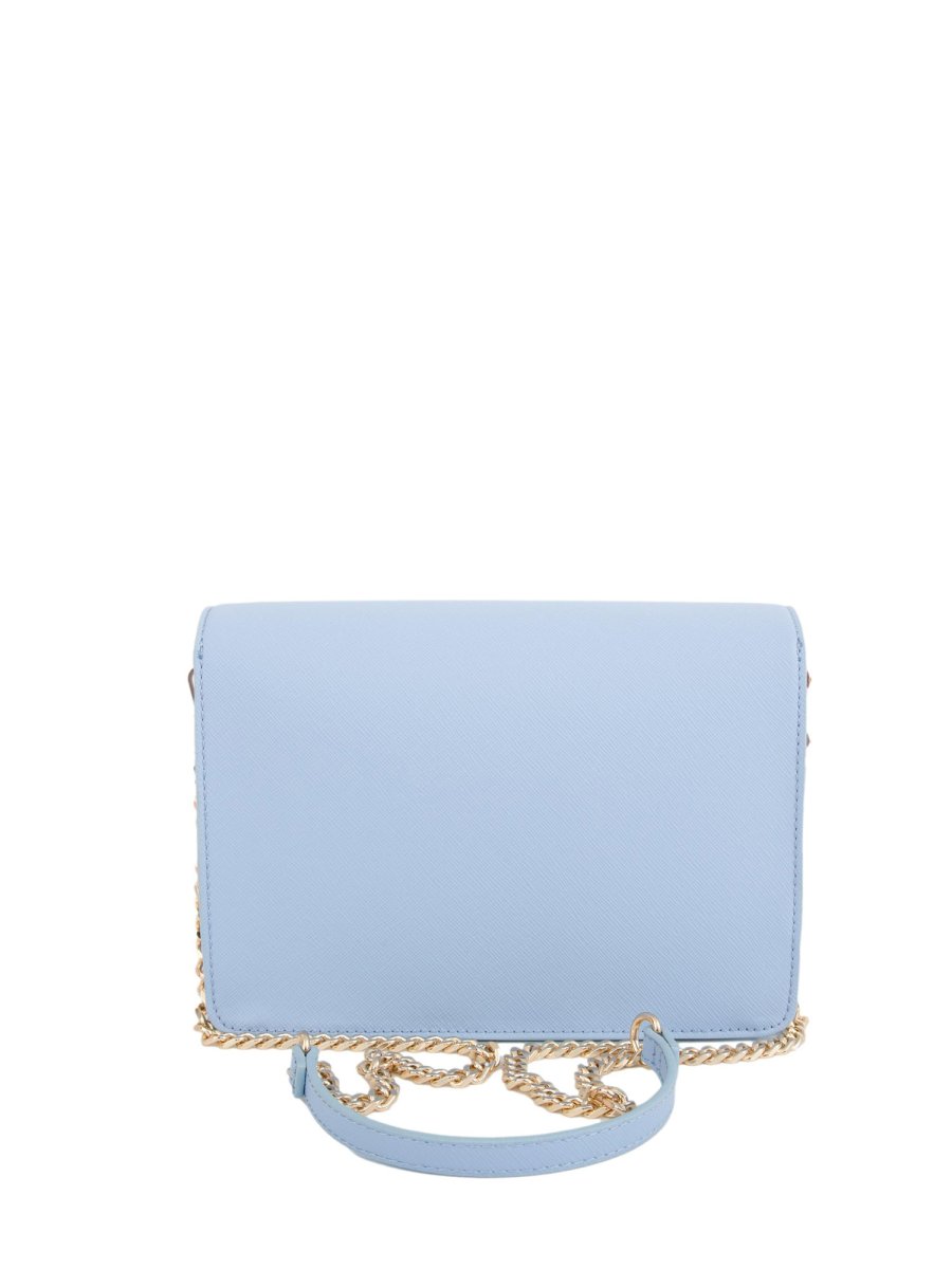 Сумка через плечо Liu Jo с простыми линиями, оживленными крупным рельефным логотипом спереди. Завораживающий дизайн нежного светло-голубого цвета дополнит ваш городской образ. Съемный плечевой ремень с цепочкой, два внутренних отделения и клапан с застежкой на магнитную кнопку. Размеры: 22 х 6 х 16 см.