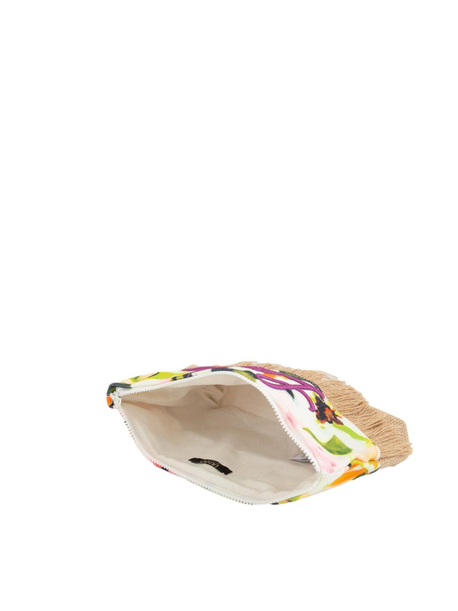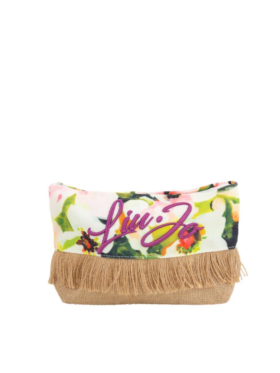 Женская сумка-клатч Liu Jo из ткани с зеленым узором, украшенная в нижней части рафией и однотонной бахромой. Крупный контрастный буквенный логотип, вышитый спереди, застежка-молния и внутренняя подкладка делают ее красивой и практичной, чтобы всегда носить с собой. Размеры: 20x15x5 см.