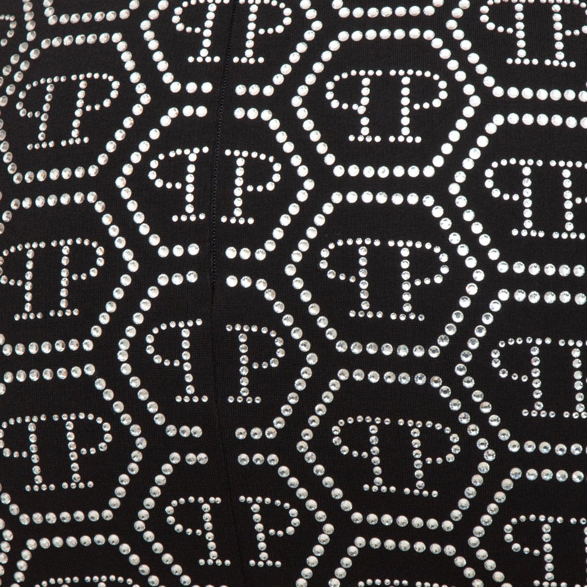 ● Maglina stretch di misto viscosa ricoperta da applicazioni di cristalli che compongono il logo del brand come motivo all over