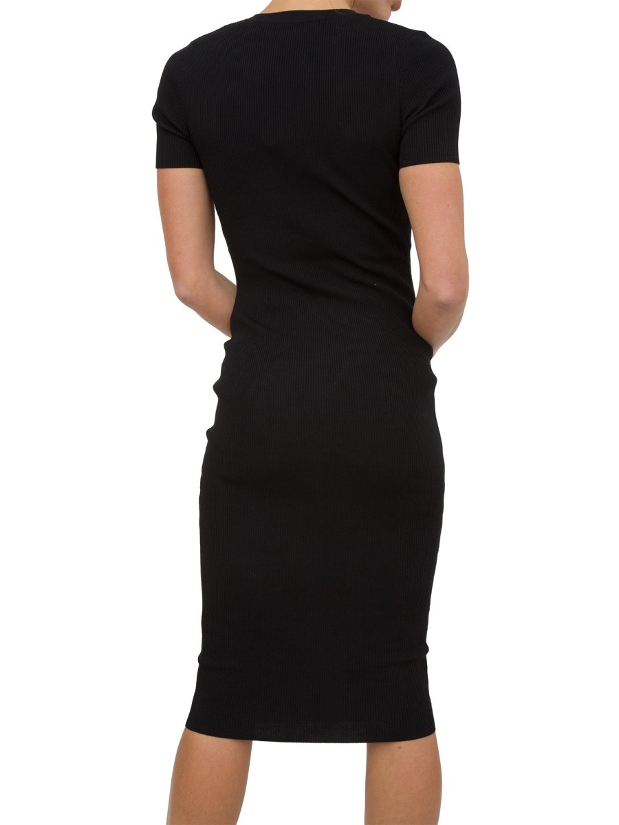 Abito longuette in viscosa a costine con scollo a V impreziosito da un accessorio collana in metallo dorato.