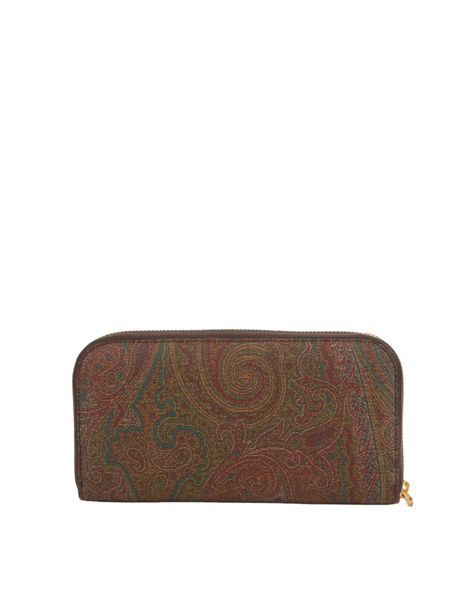 Кошелек на молнии, выполненный из культовой жаккардовой ткани с рисунком пейсли и украшенный вышитыми спереди логотипами ETRO и Pegaso.