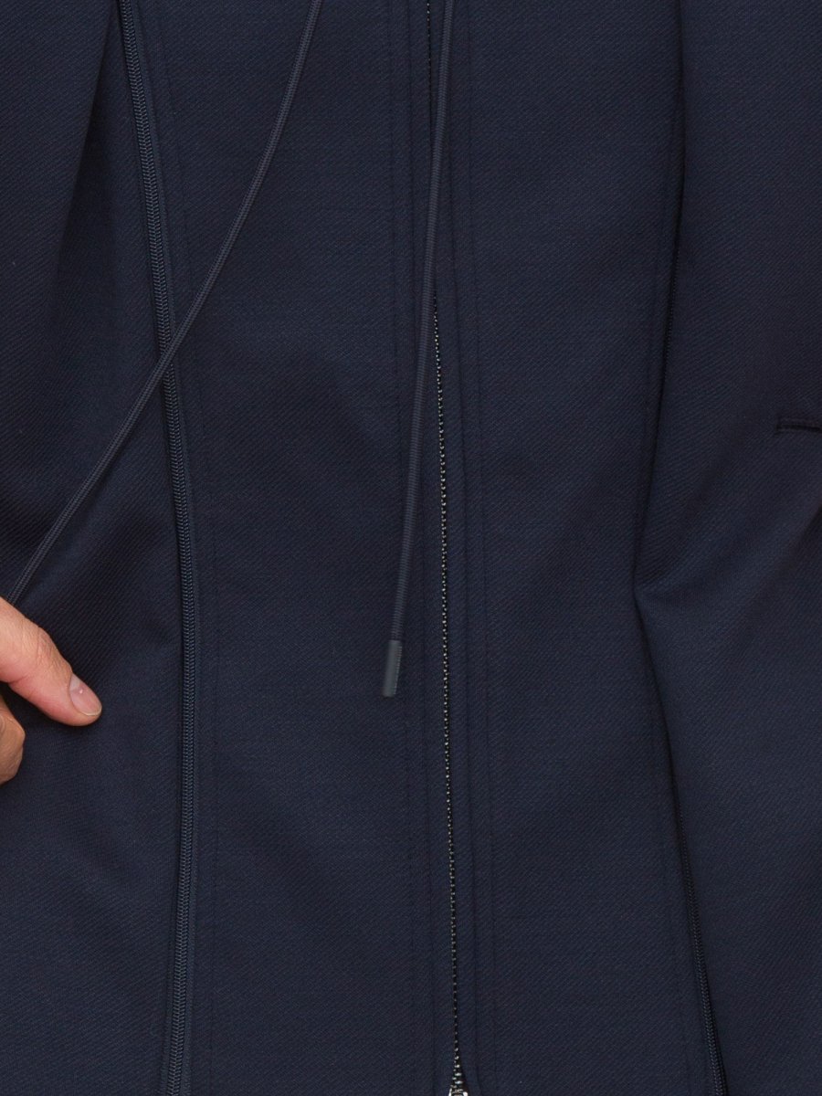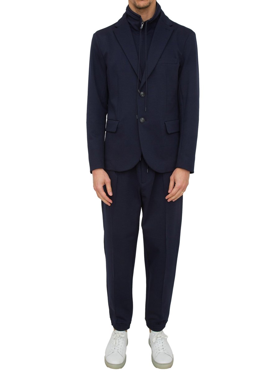 Blazer da uomo Emporio Armani realizzato in jersey misto lana, provvisto di chiusura monopetto e pettorina interna removibile con full zip e coulisse.