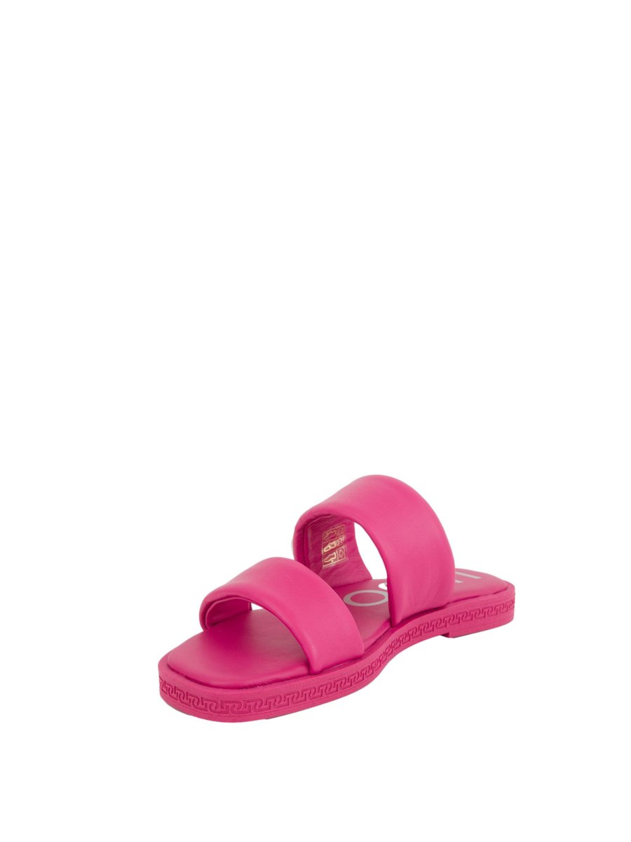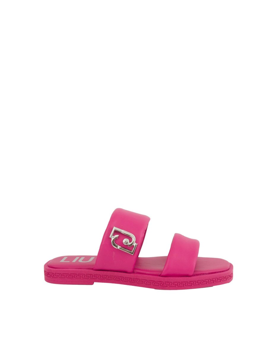 Sandali flat Liu-jo con fascette bold in nappa, logo LJ applicato, made in Italy, profilo suola con monogram LJ e altezza suola: 2 cm.
