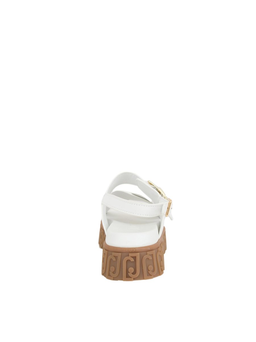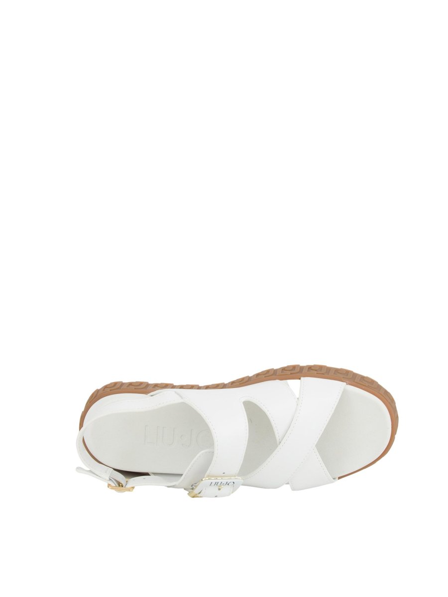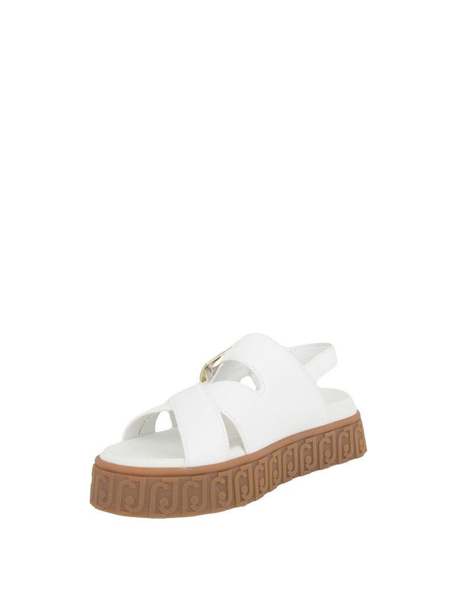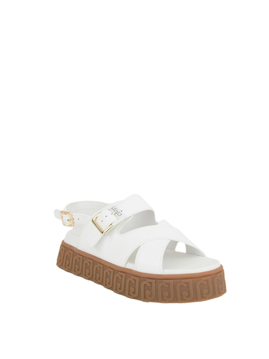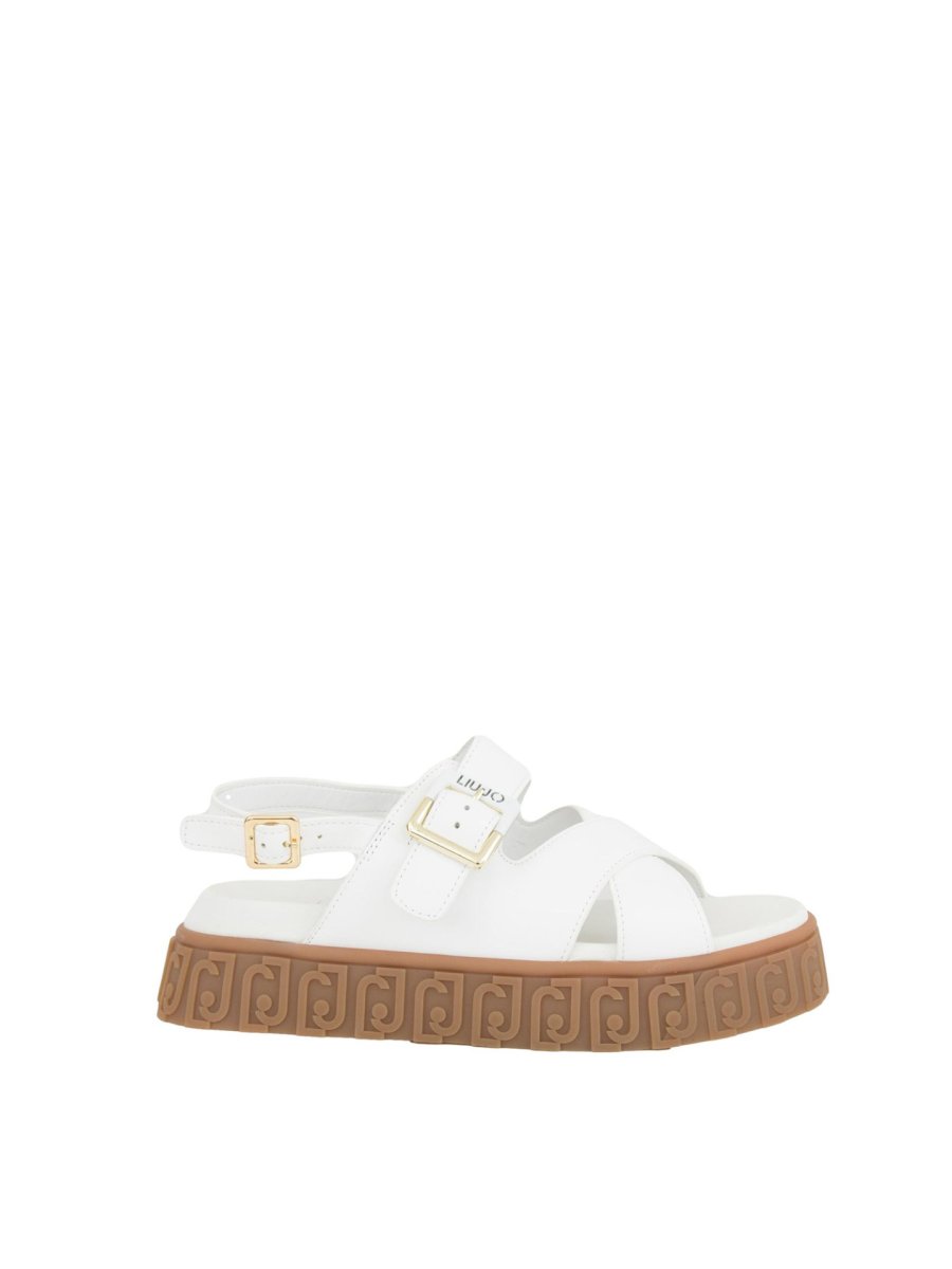 Sandali da donna Liu-jo con tomaia in vera pelle, modello a fasce incrociate sul davanti, fibbia bicolor con logo smaltato, chiusura con cinturino regolabile alla caviglia, suola in gomma con logo LJ in rilievo. Altezza suola: 3,5 cm