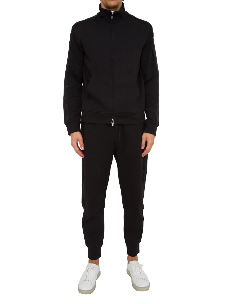 Pantalone tuta da uomo Emporio Armani realizzato in double jersey di misto cotone, modello jogger con coulisse e fondo elastico.