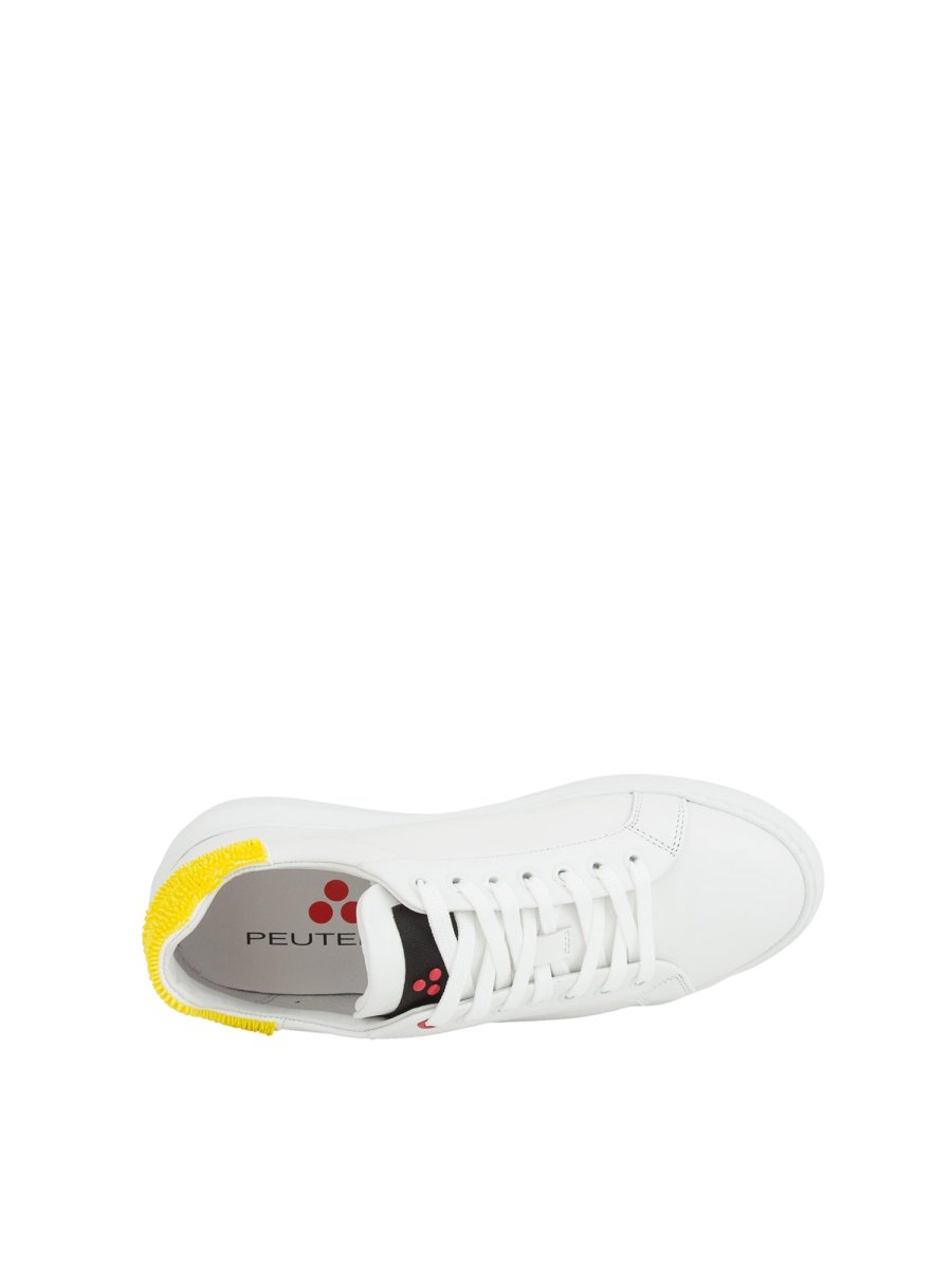 Sneaker tipo tennis, in morbidissima pelle, mix di comfort e linee essenziali. Un design minimal, impreziosito da una particolarissima lavorazione con dettagli ad inezione e scritta Peuterey il rilievo sul tallone. Il modello ha punta stondata, chiusura con lacci e suola a cassetta.
