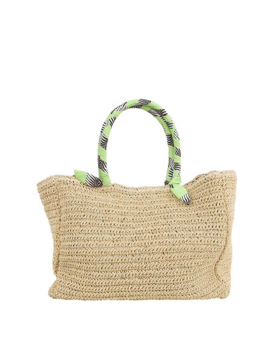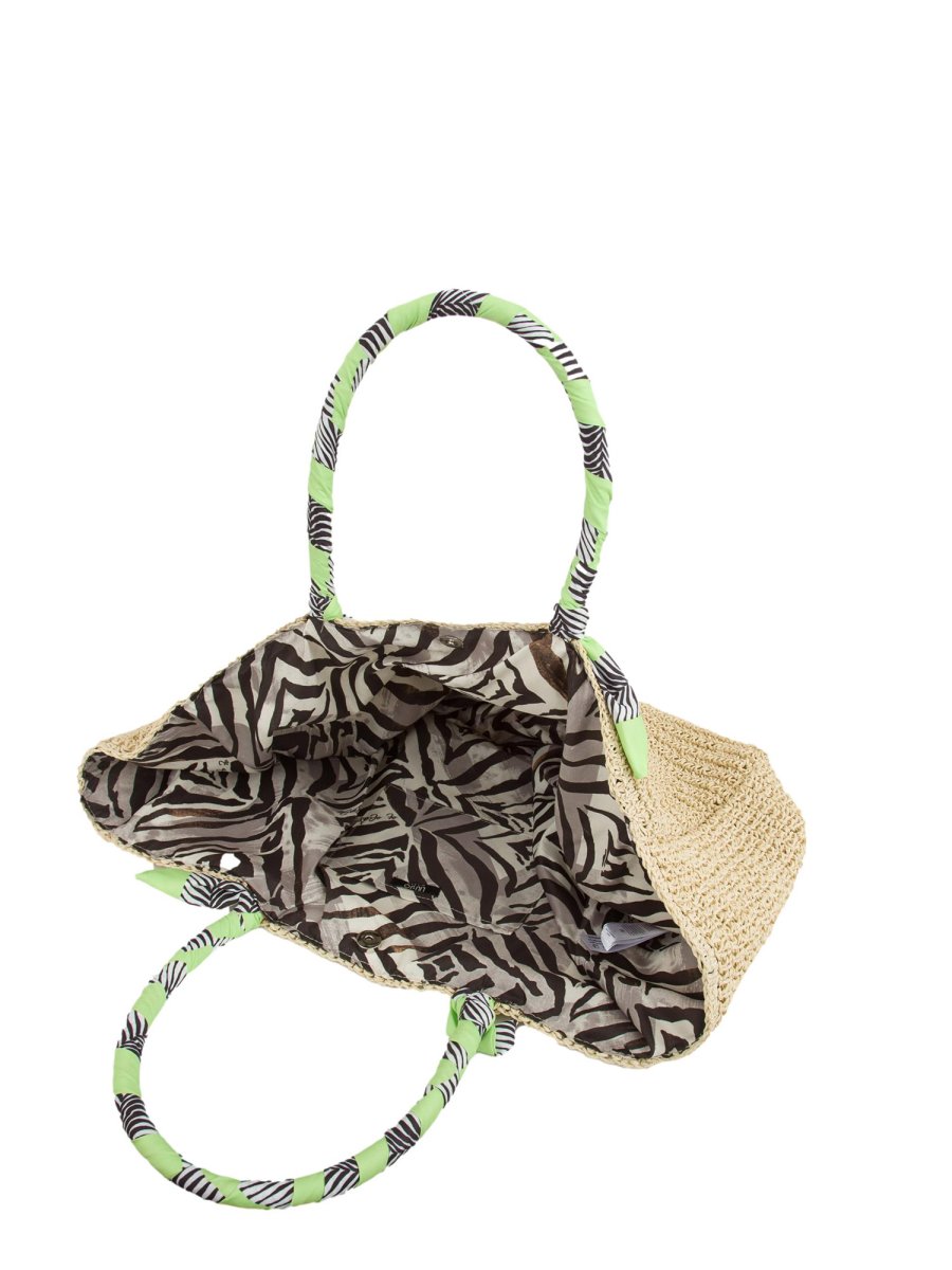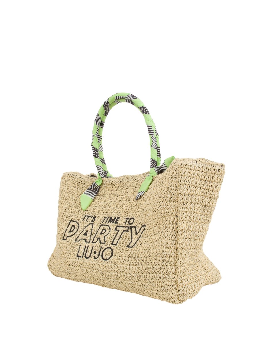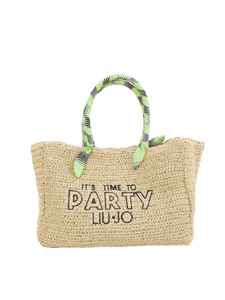 Shopping bag Liu-jo in rafia, lettering con logo ricamati sul davanti, comodi manici con motivo stampato, tasca interna con zip, fodera interna con stampa a righe animalier e chiusura con bottone magnetico.