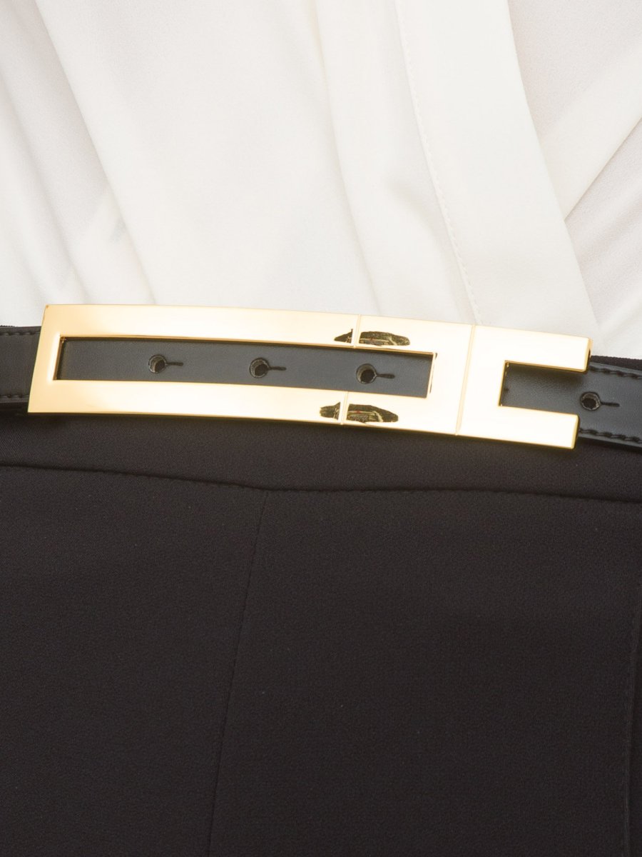 Shorts con vita alta in crêpe leggero stretch con nervature. Il punto vita è enfatizzato da una cintura in materiale sintetico effetto pelle con fibbia in metallo dorato.