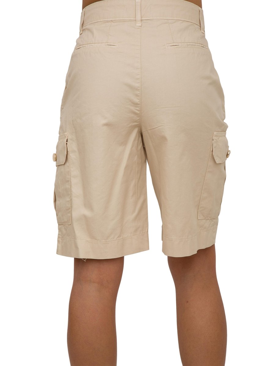 Pantaloncini cargo in cotone, vita regolare, tasche alla francese, filetti sul retro, tasconi laterali, e con fondo dritto.