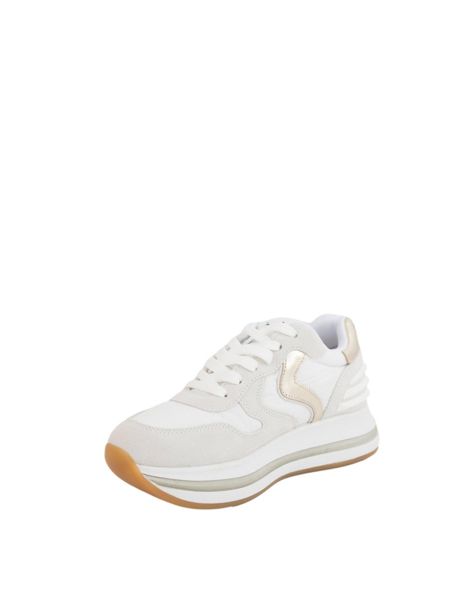 Кросівки Voile Blanche з технічної тканини та замші з деталями з ламінованої шкіри. Тривимірні гумові вставки на п'яті, гумова підошва подвійної висоти із платиновою вставкою. Зручні та стильні для вашого повсякденного образу.