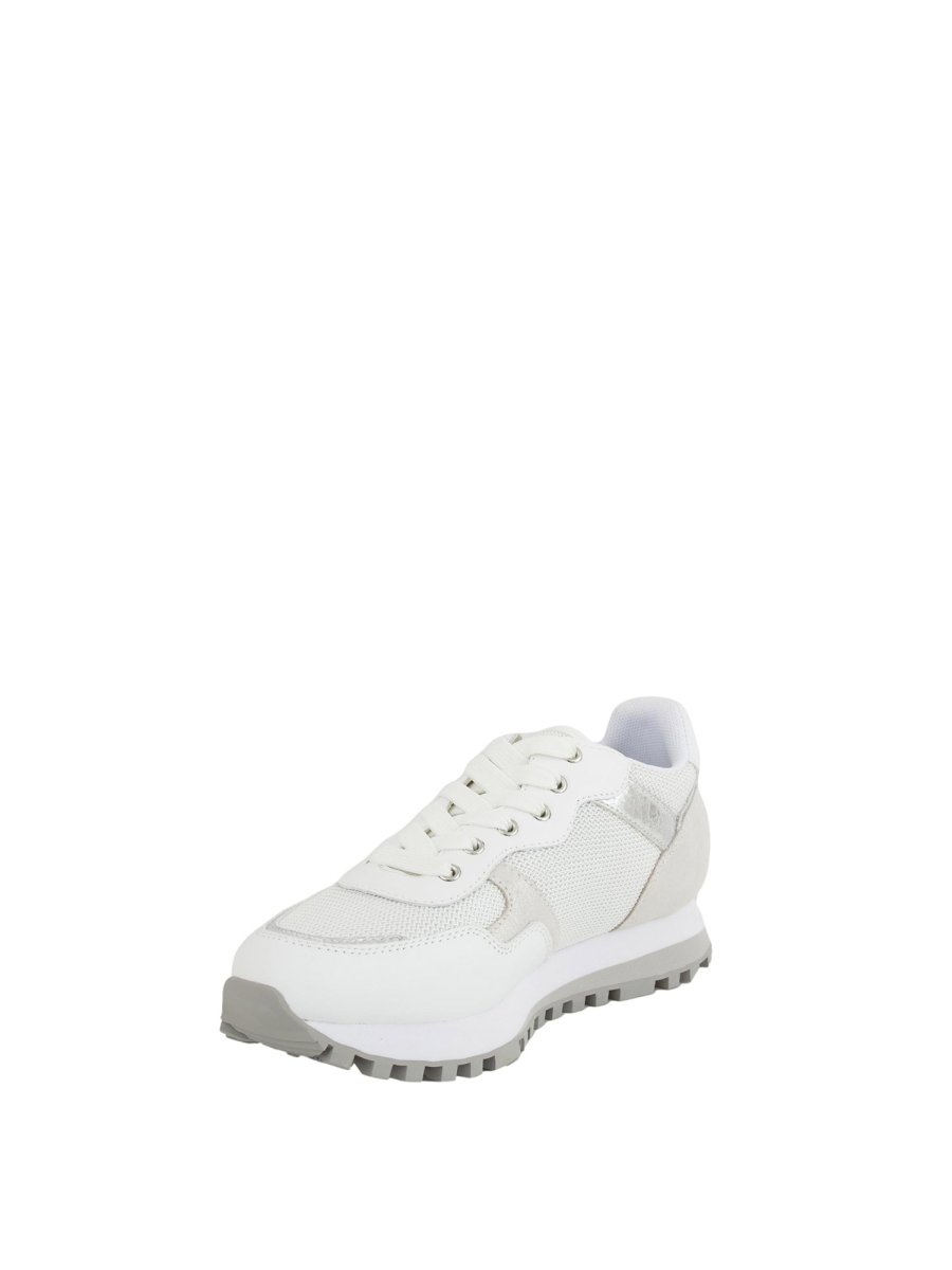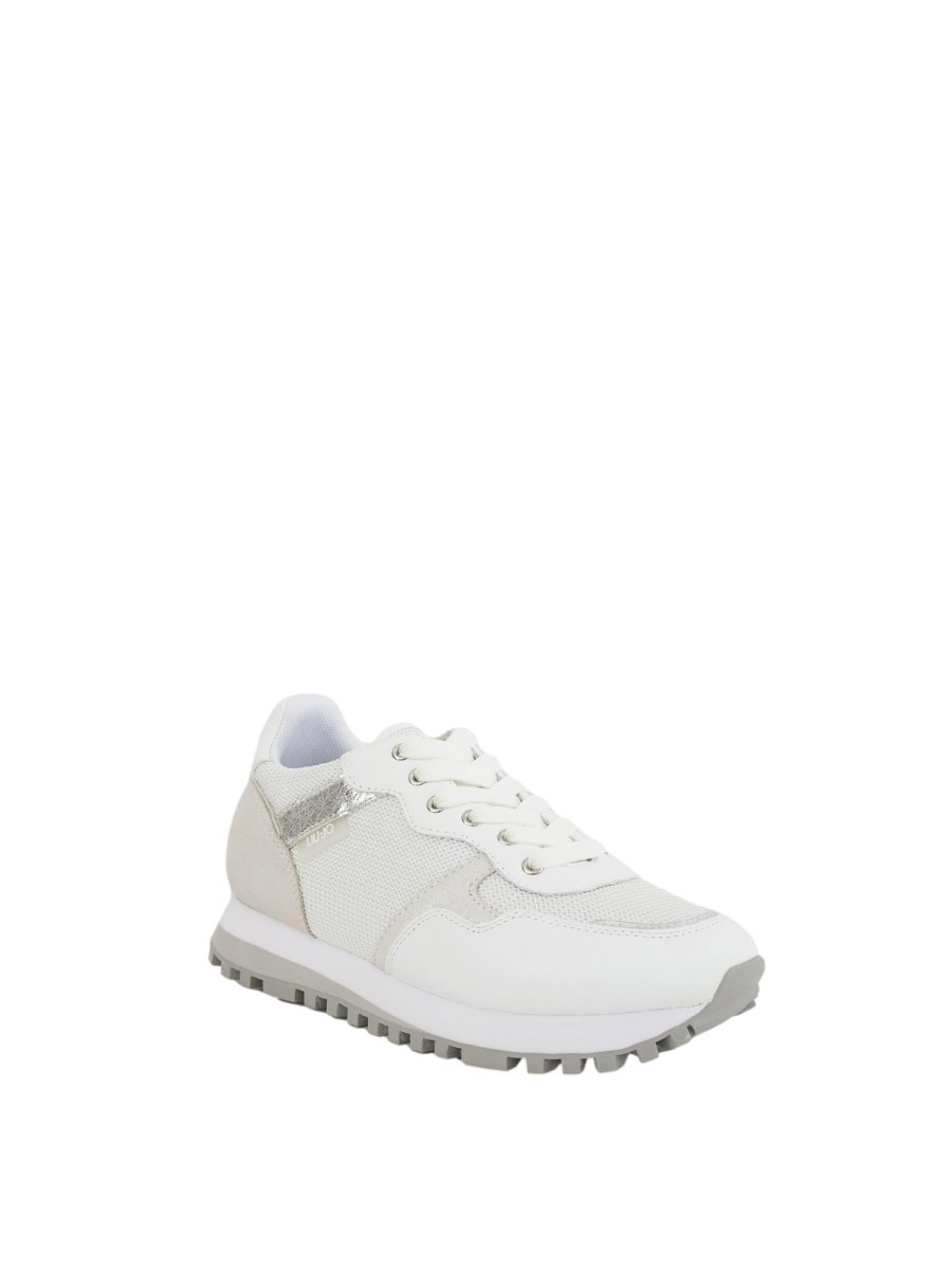 Sneakers da donna Liu-jo con tomaia in pelle e brighty mesh, inserti crackle, inserti in suede effetto shiny, logo embossed sul tallone, lacci piatti, etichetta logata in gomma inserita in cucitura e suola bicolor. Altezza suola: 3,5 cm