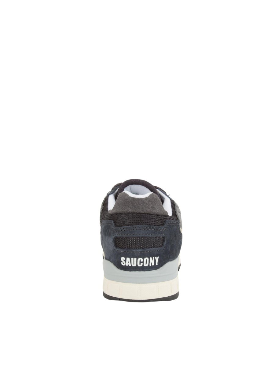 Sneakers Saucony da uomo con tomaia in mesh classico e materiale scamosciato, chiusura a lacci con occhielli centrali e superiori ad allacciatura rapida e colletto morbido e linguetta foderata.