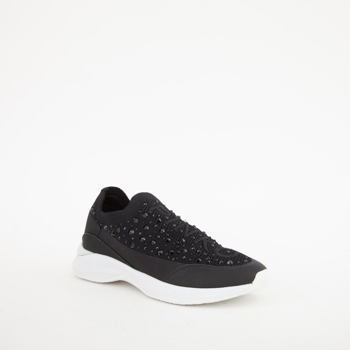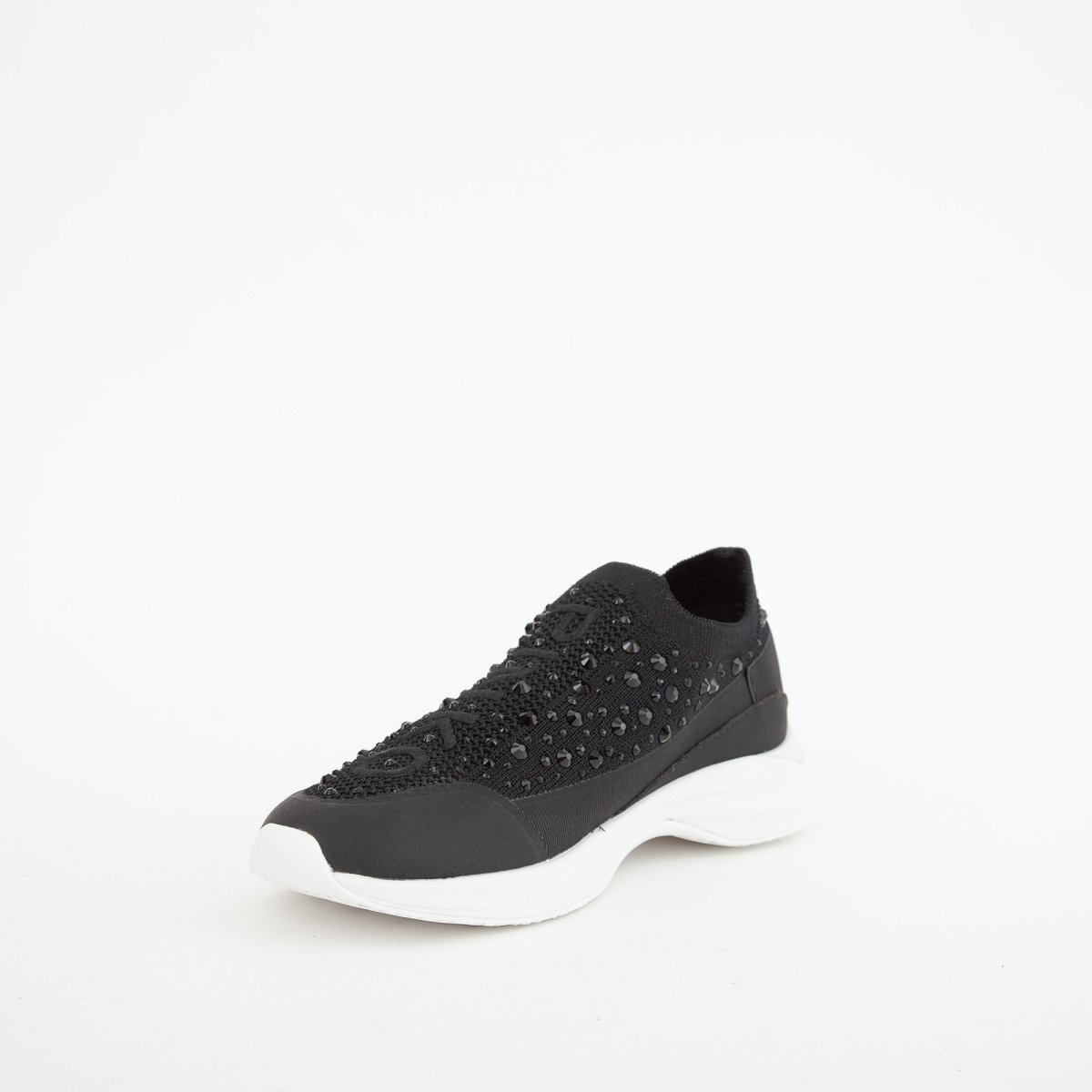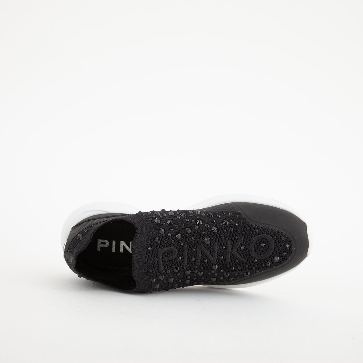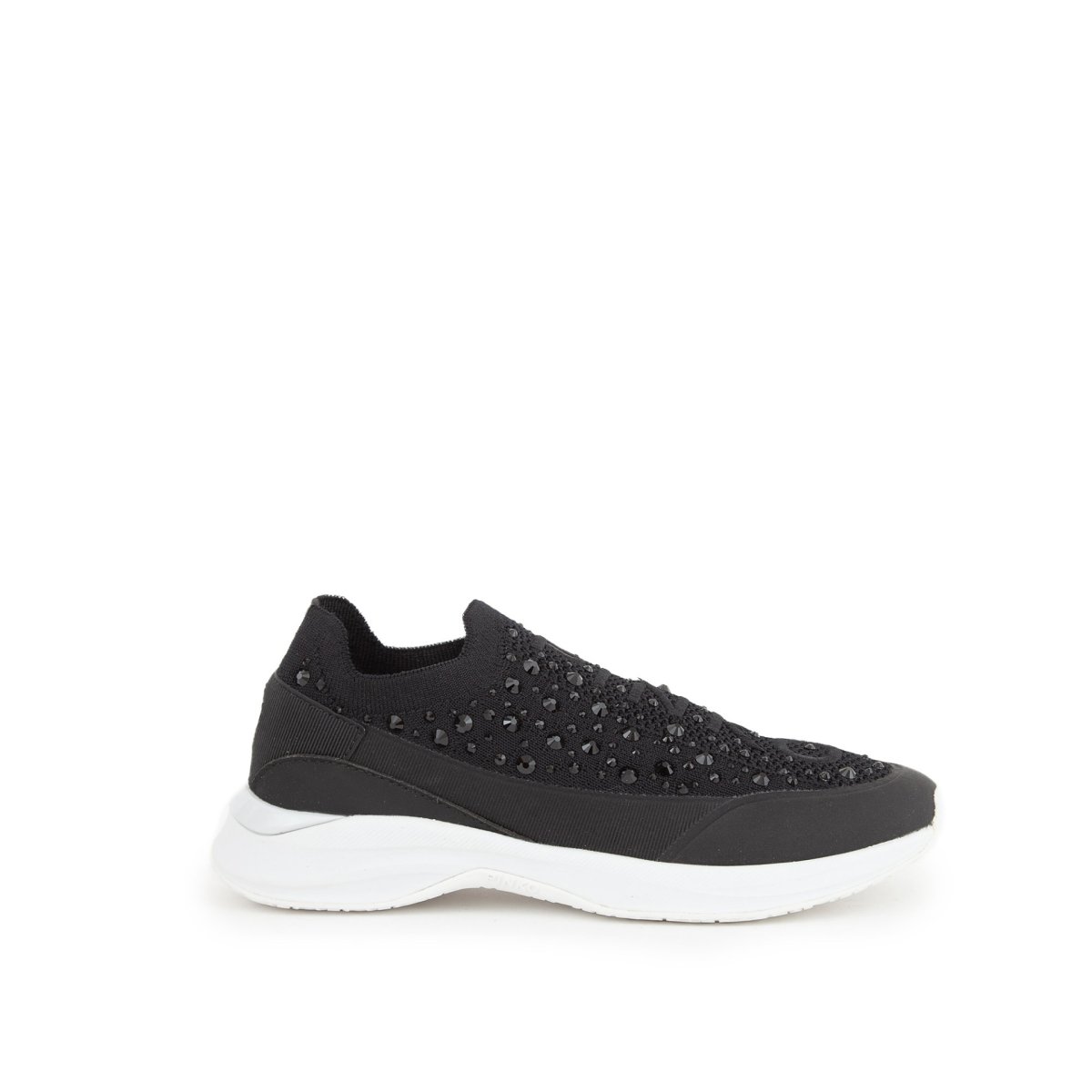 Sneakers Pinko light tech knit con full strass, logo ricamato e materiale elasticizzato.