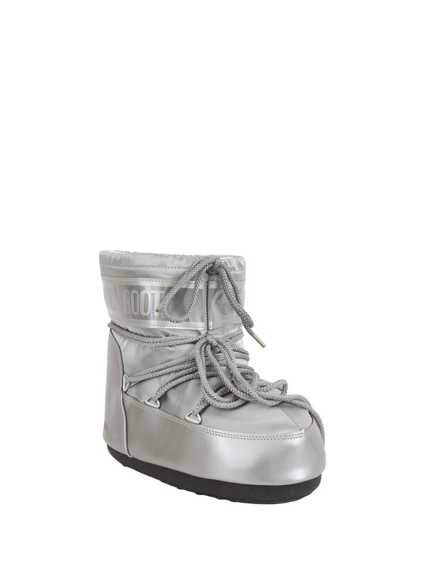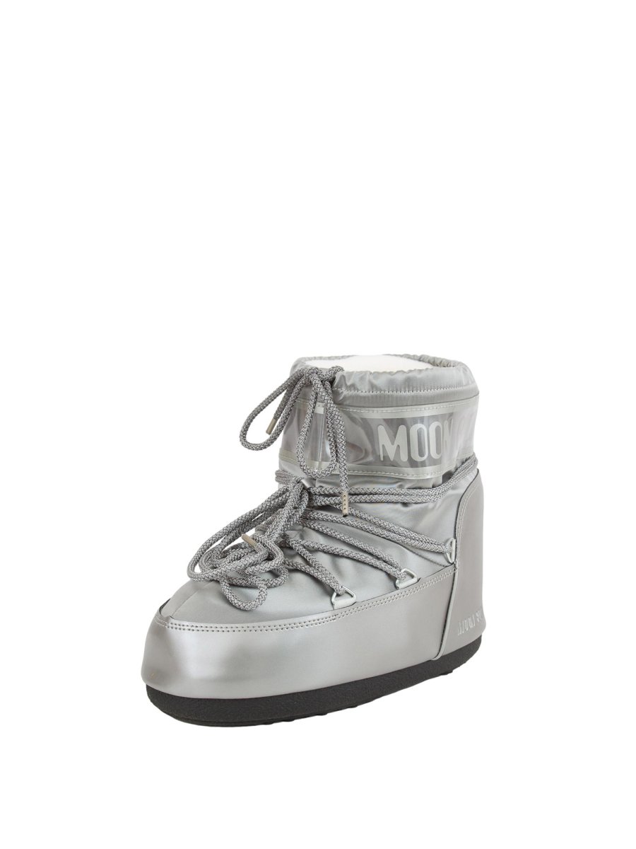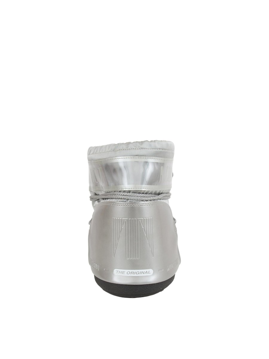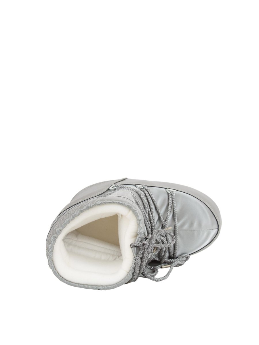 Moon Boot in raso. Ispirato all'atterraggio lunare del 1969, l'Icon Low Glance è realizzato con la stessa tecnologia del modello originale e non ha nulla da invidiare alle calzature indossate dagli astronauti. È dotato di una suola antiscivolo che garantisce la massima presa e di un’imbottitura isolante che tiene il piede caldo e asciutto in ogni condizione climatica.