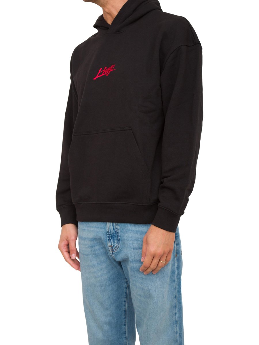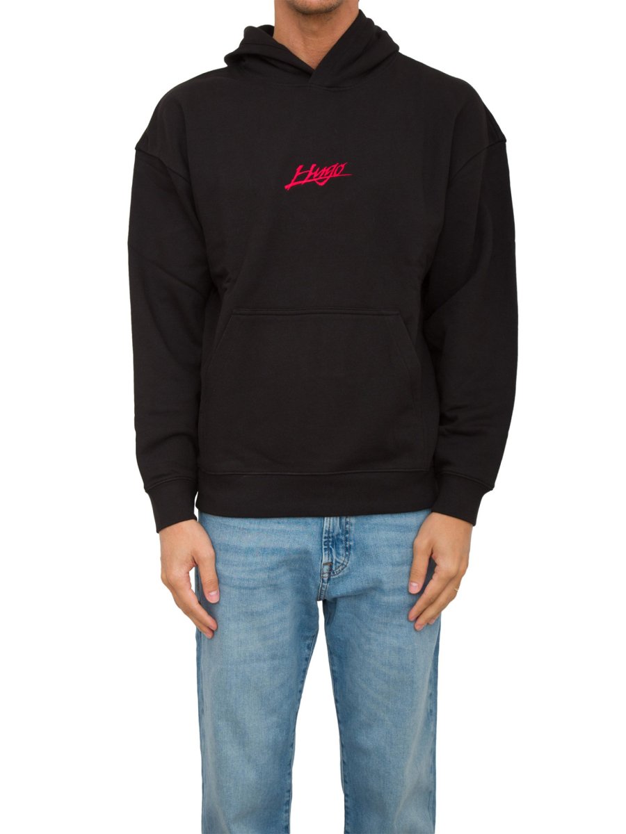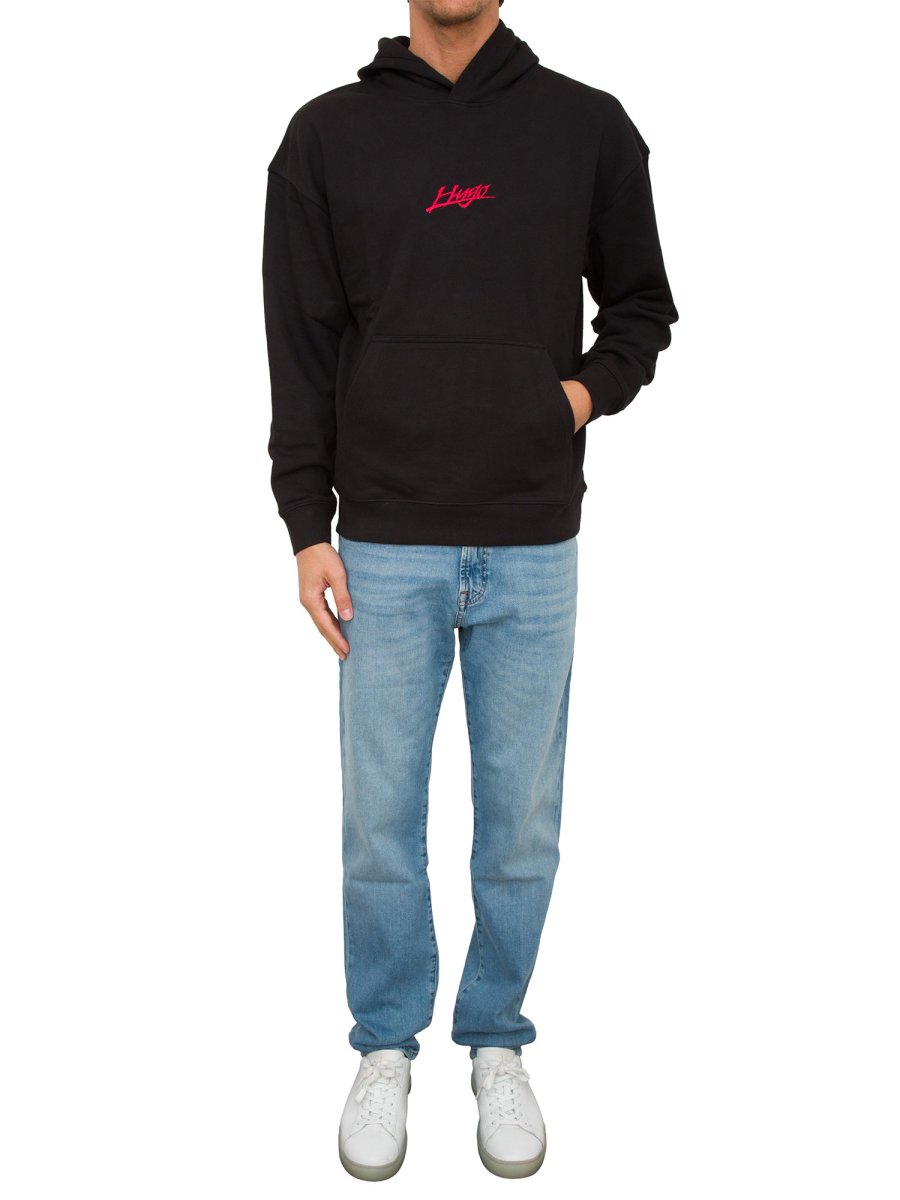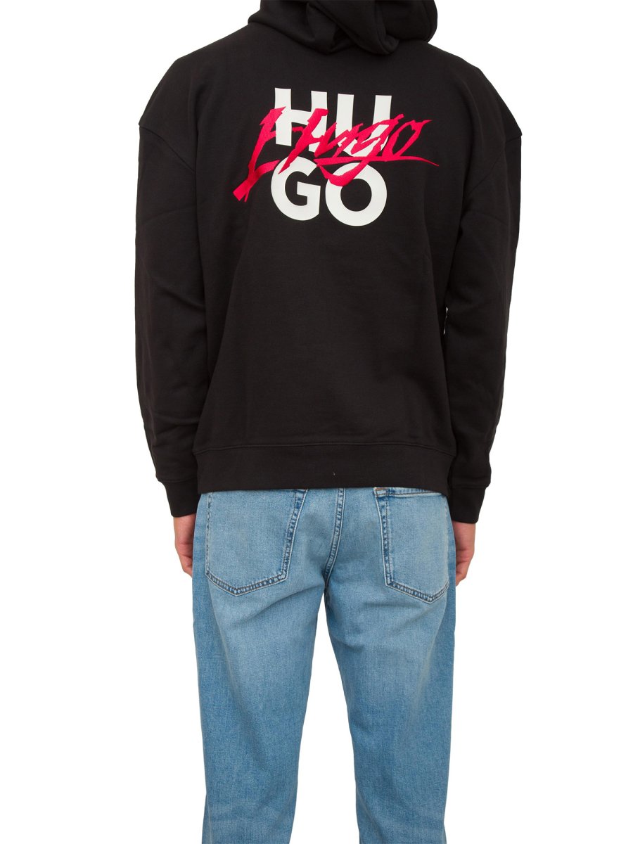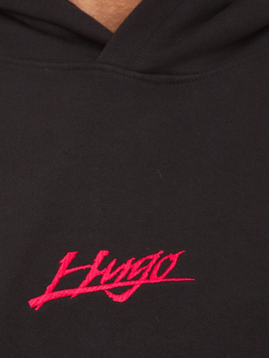 Толстовка HUGO вільного крою. Модель виконана зі 100% бавовняної махрової тканини, прикрашеної логотипами, надрукованими спереду та ззаду.
