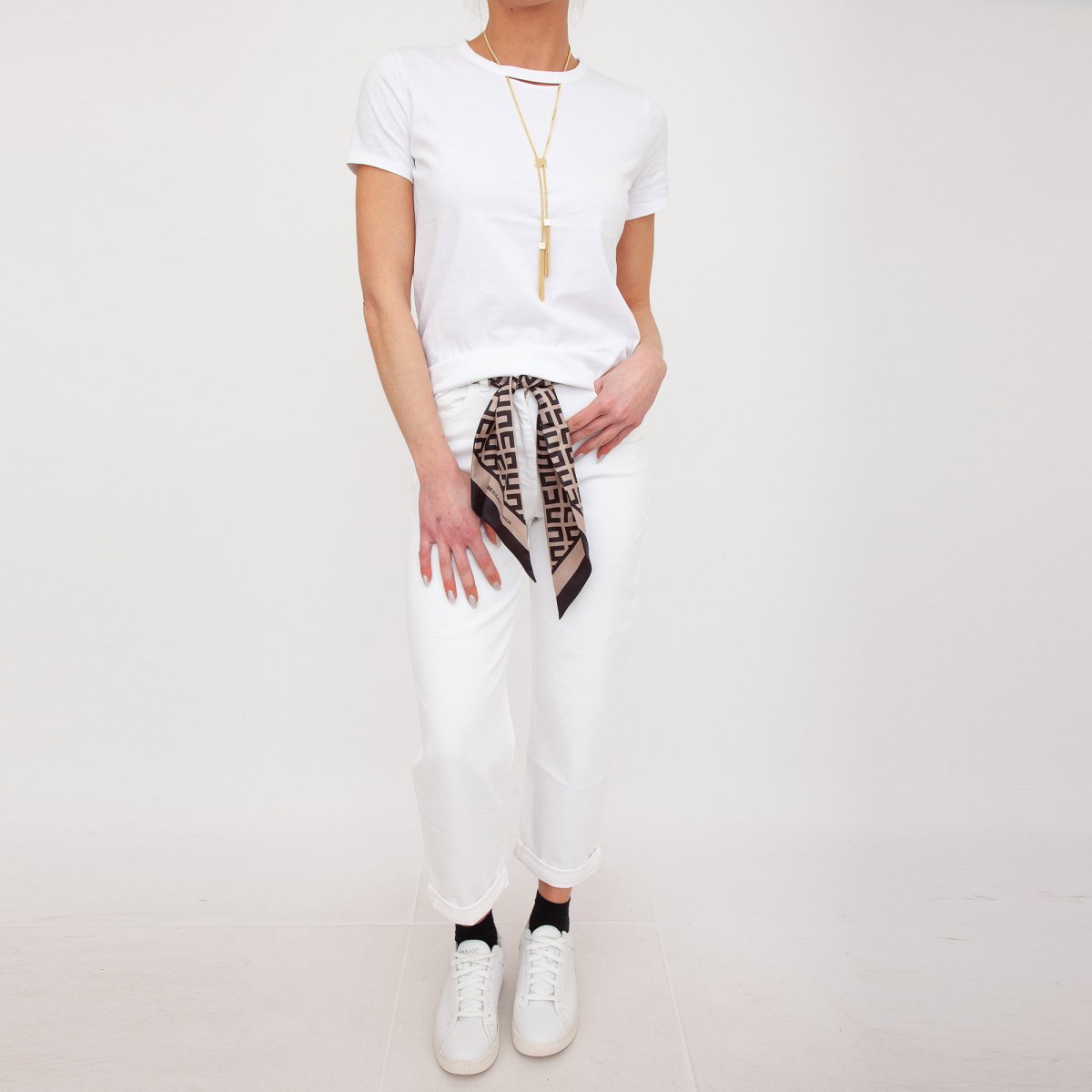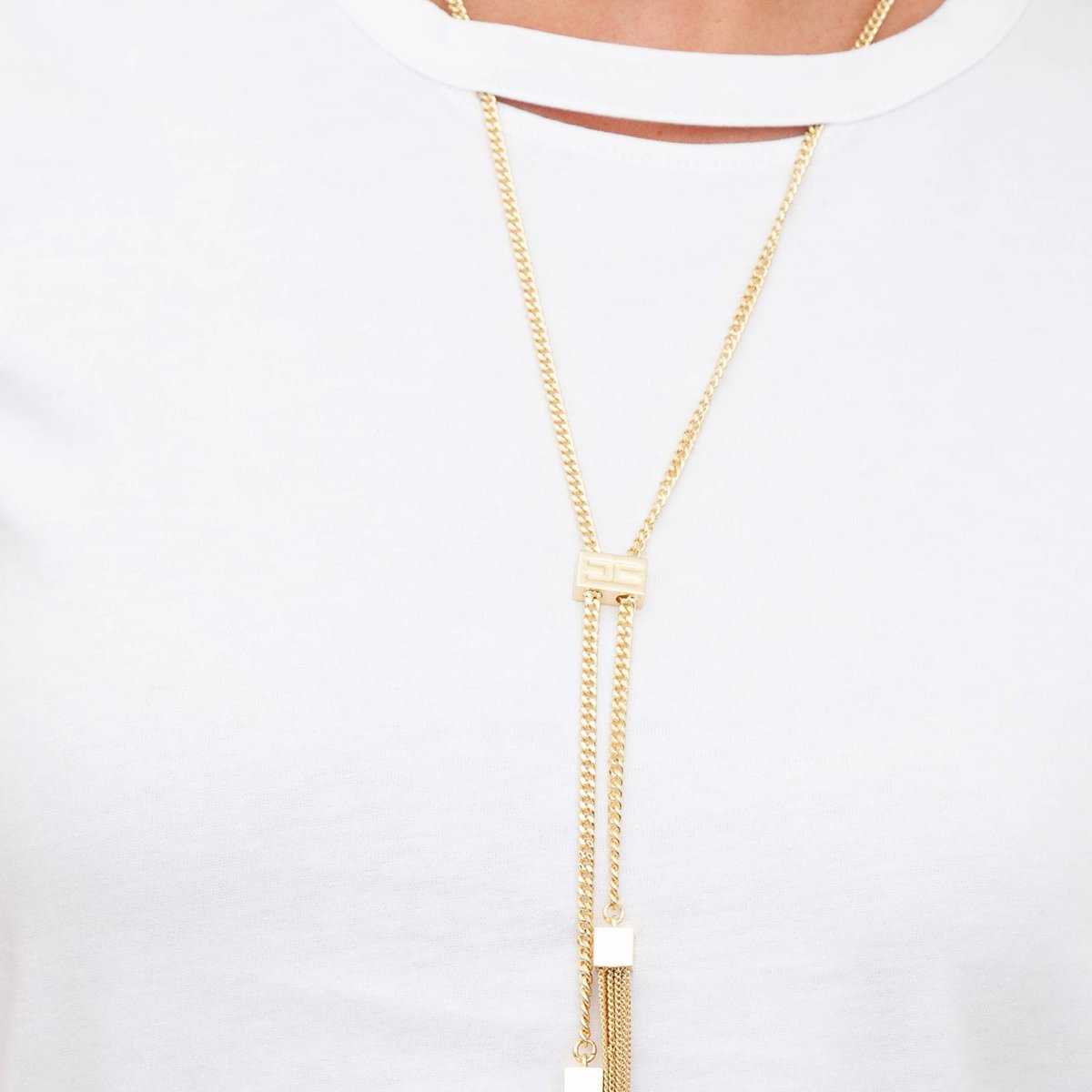 T-shirt Elisabetta Franchi, girocollo in jersey di cotone e collana in metallo colore oro.