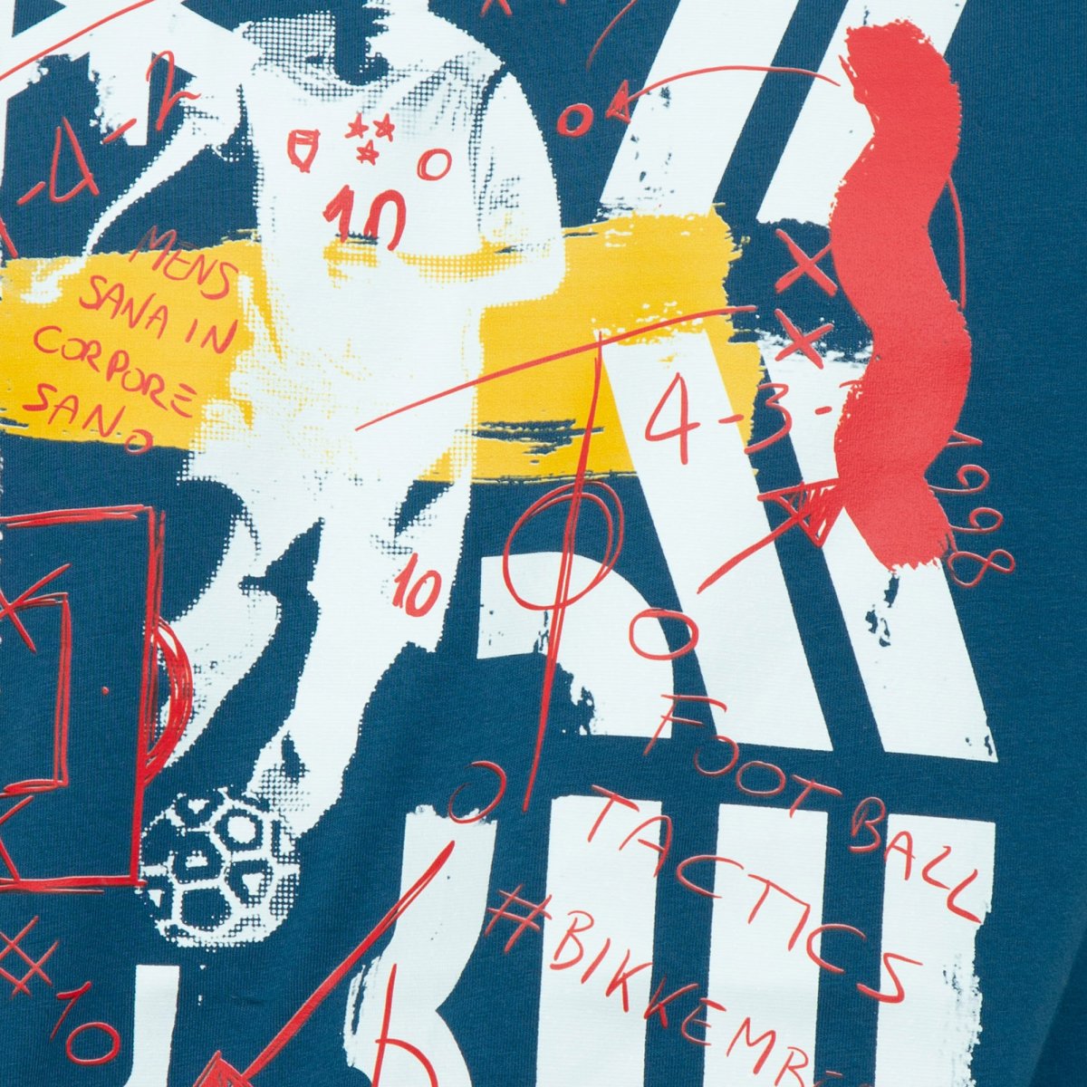Realizzata in morbido jersey di cotone stretch, questa T-shirt da uomo è decorata da una stampa che esprime la vitalità e il senso di libertà di una partita a calcio sulla spiaggia di Rio de Janeiro. Internamente, il colletto della maglietta è rifinito da una banda a contrasto arricchita dall'iconico lettering Bikkembergs.