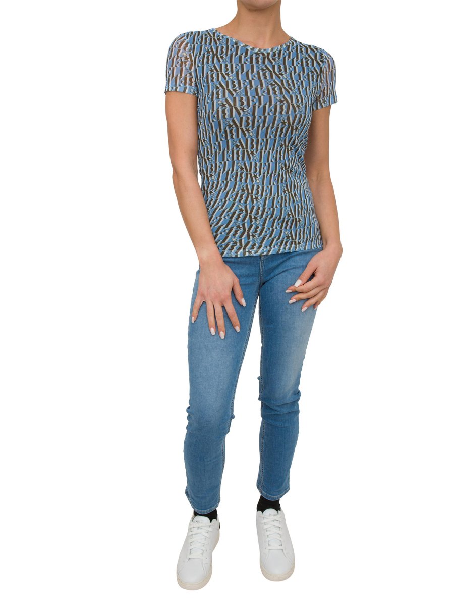 La t-shirt girocollo in morbido jersey di tulle ha maniche corte e un taglio extra slim. Si porta da sola, come sottogiacca o in layering con abiti e maglieria.