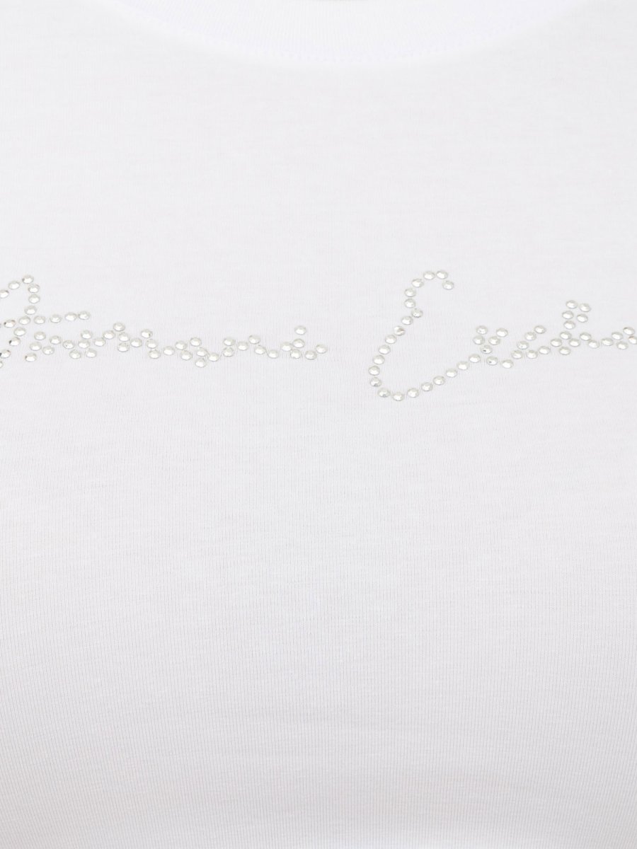 T-shirt slim fit realizzata in jersey di cotone stretch e personalizzata dal logo lettering composto da luminosi glitter. Il modello è completato dallo scollo tondo e dalle maniche corte.