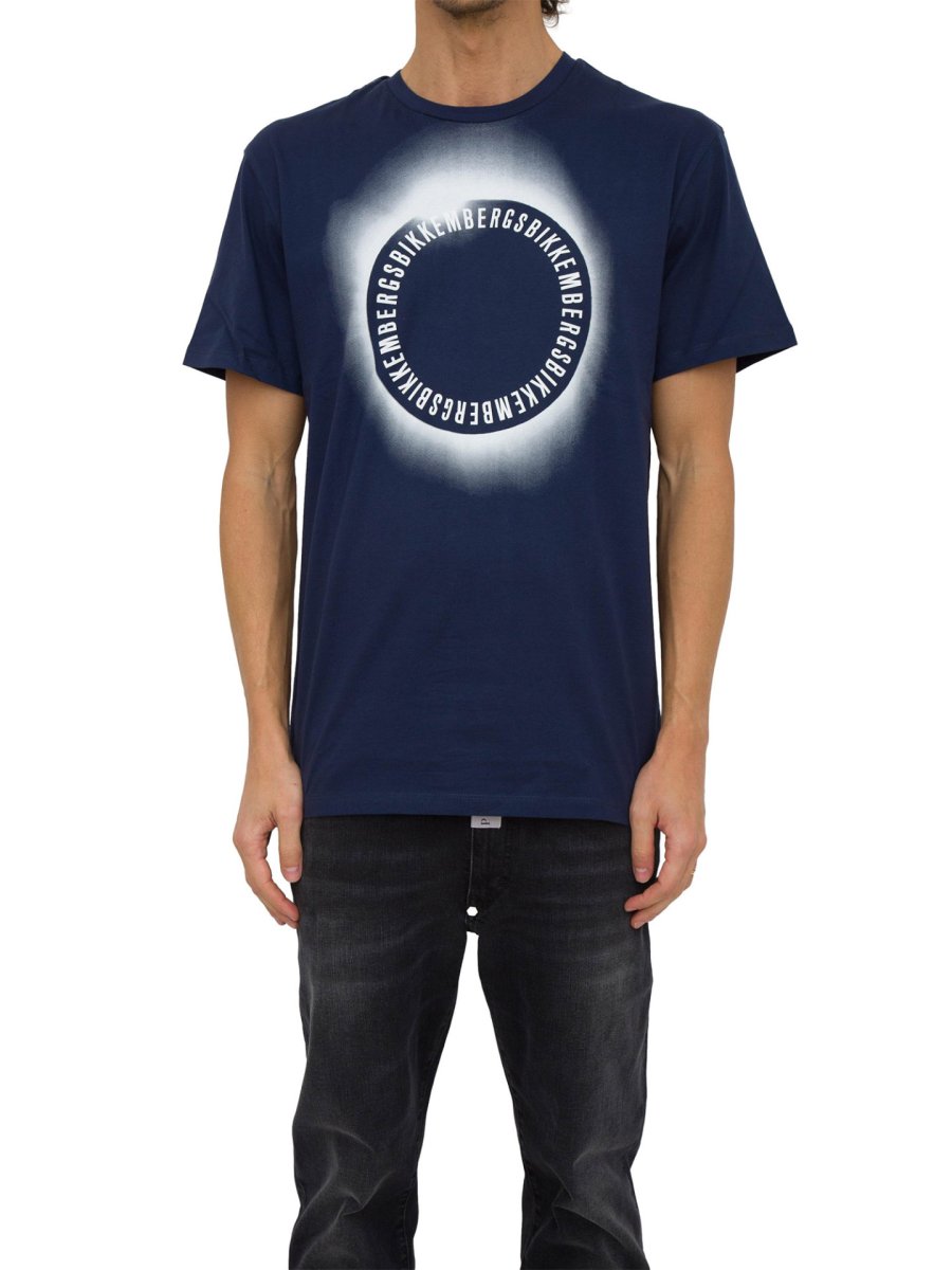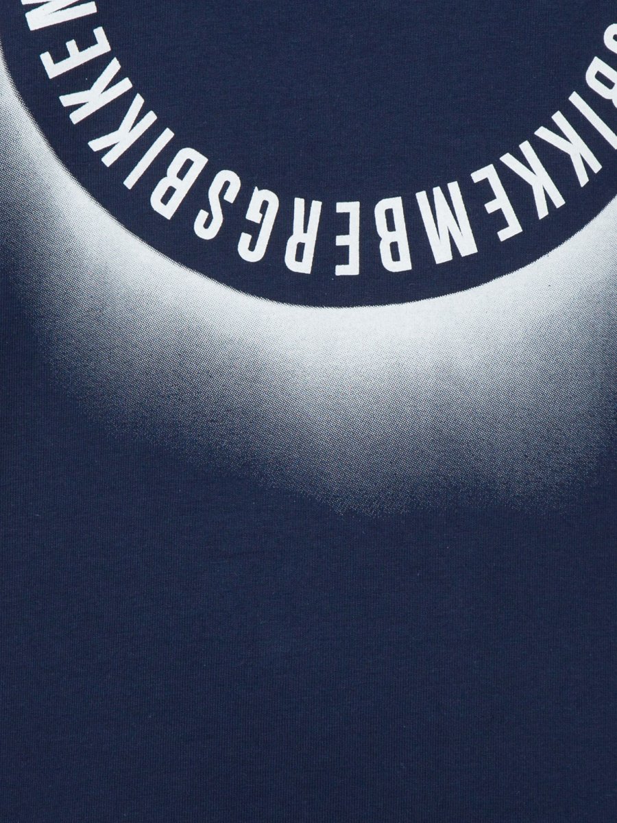 T-shirt da uomo Bikkembergs in jersey fermo di puro cotone caratterizzata da molteplici stampe che evocano un'eclissi. La maglietta presenta maniche corte.