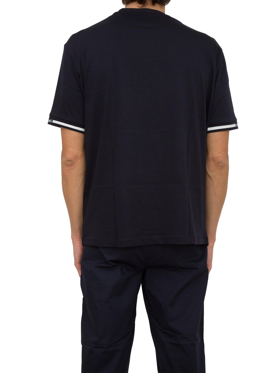 T-shirt regular fit realizzata in cotone pesante di alta qualità e personalizzata dal tape logo applicato sul profilo delle maniche che caratterizza parte della collezione. Le maniche corte e lo scollo tondo completano il modello.