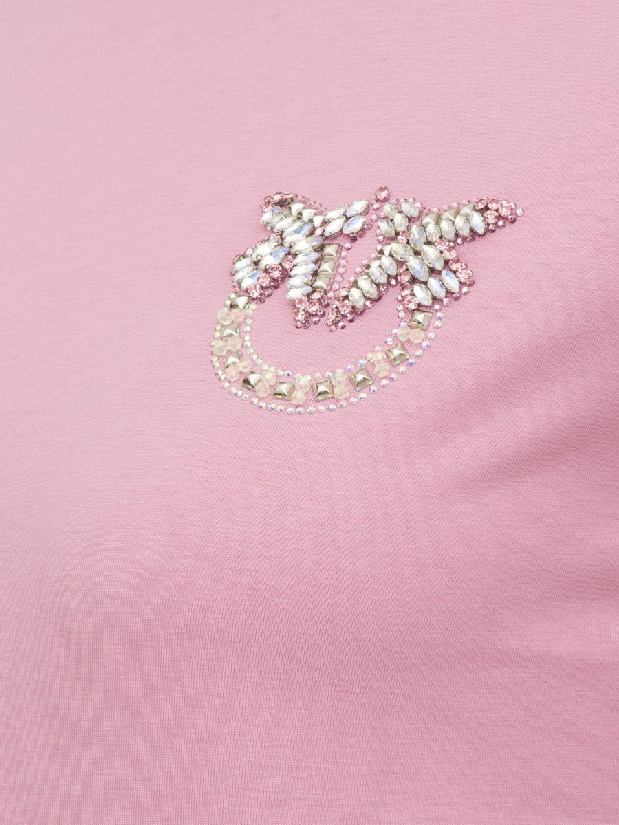 T-shirt a maniche corte in jersey di cotone con mini ricamo gioiello Love Birds davanti, lato cuore.