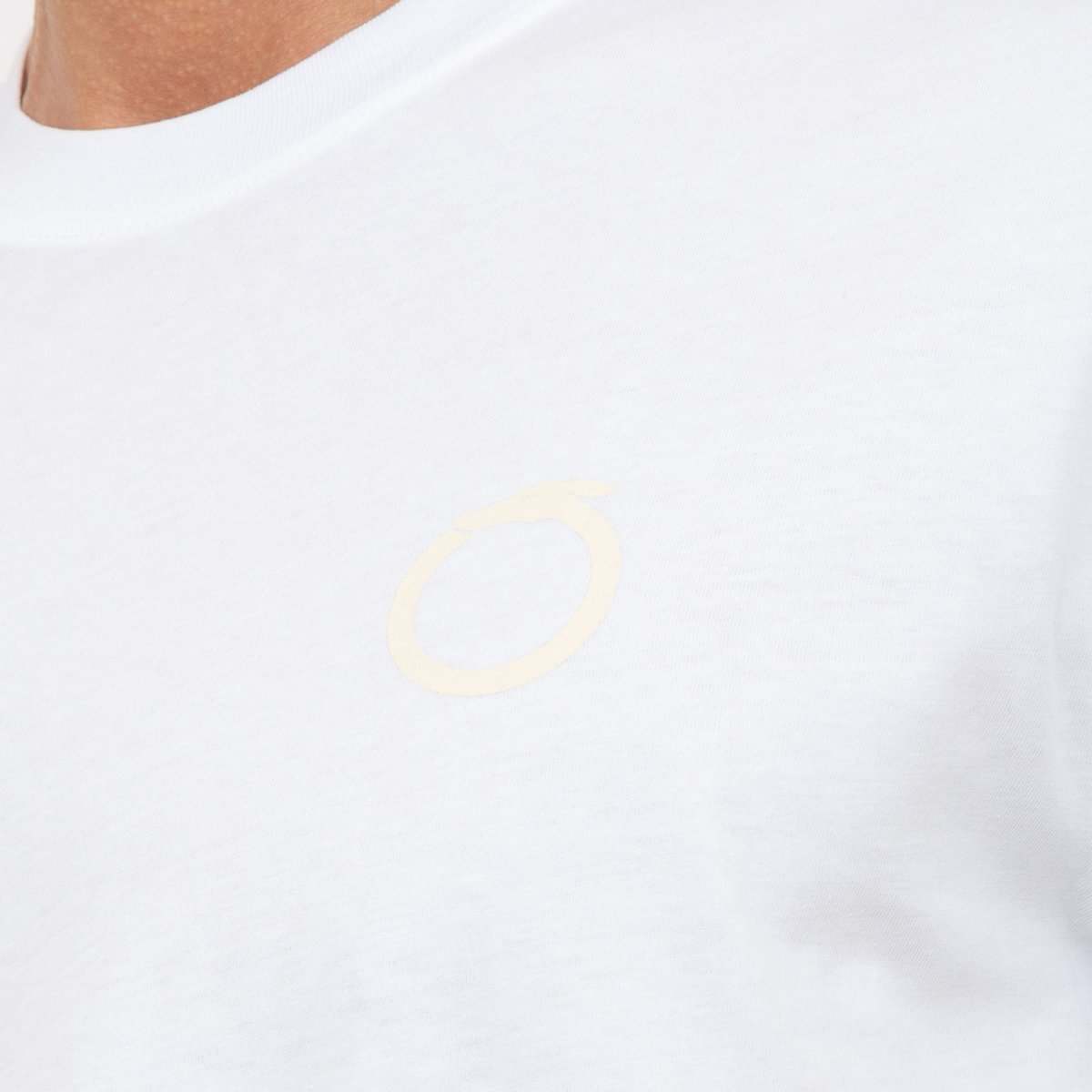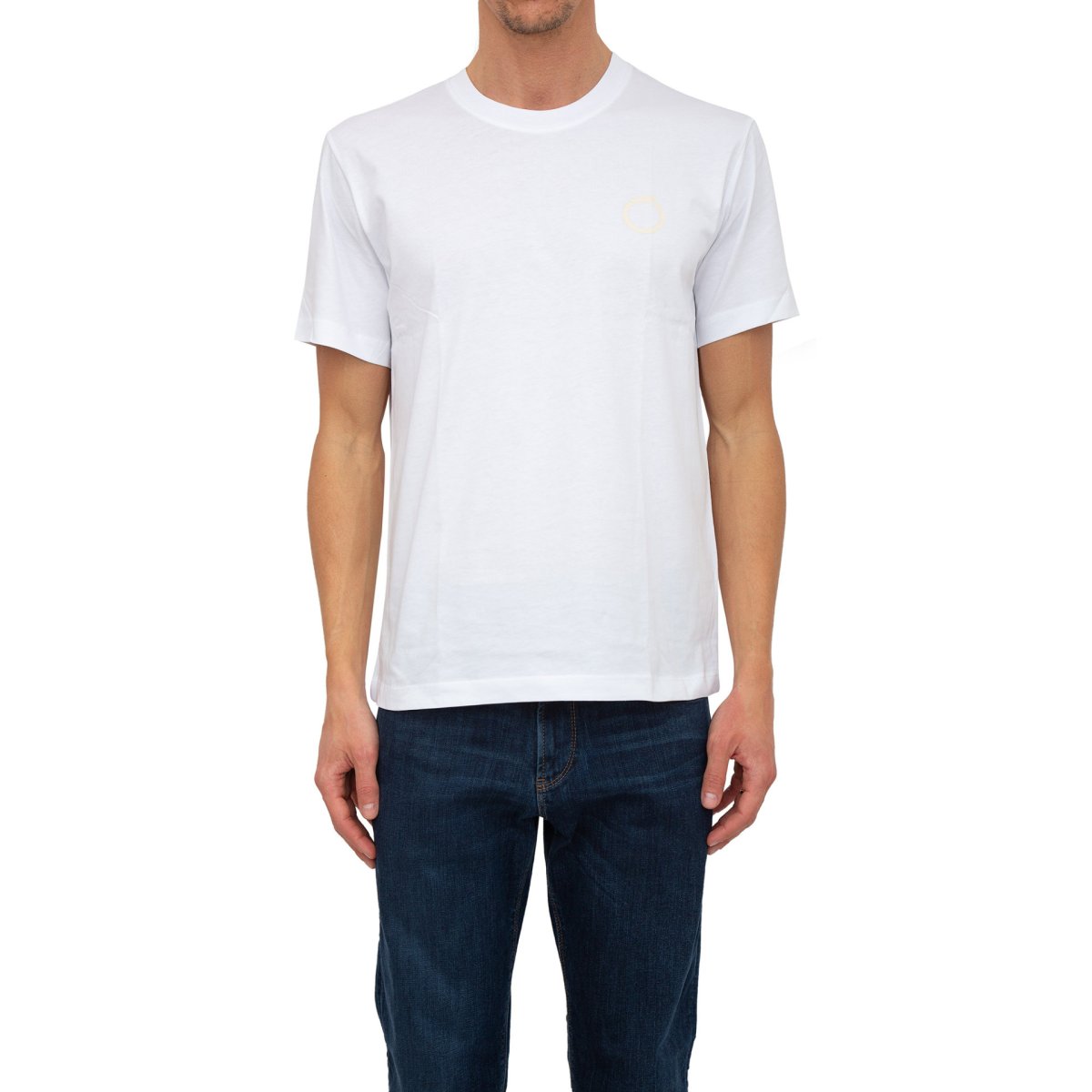 T-shirt in jersey di puro cotone con girocollo a costine, decorata da una stampa con logo Levriero circolare.
