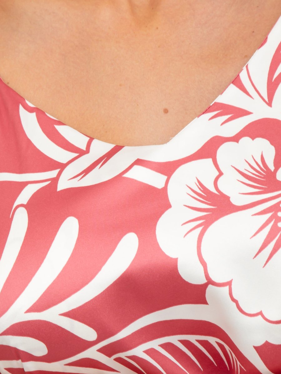Створена для теплої пори року, ця атласна майка прикрашена контрастним принтом у вигляді листя, що надає романтичного штриху вашим денним і вечірнім образам. Чудово поєднується з брюками для елегантного та вишуканого образу.
