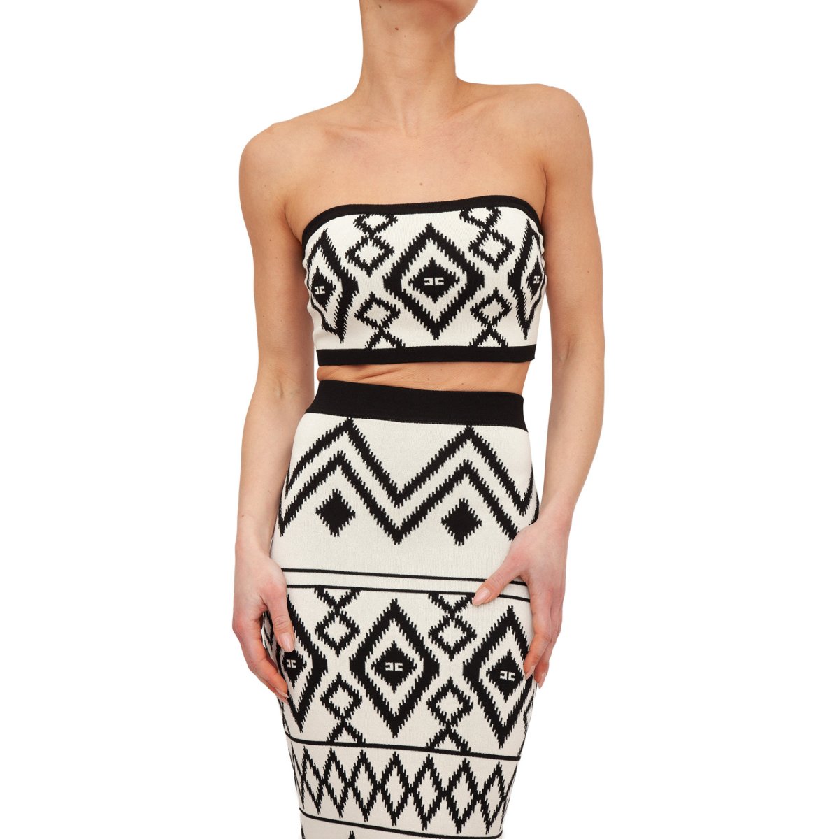 Top a fascia con grafica jacquard rombo etnico logato all over.