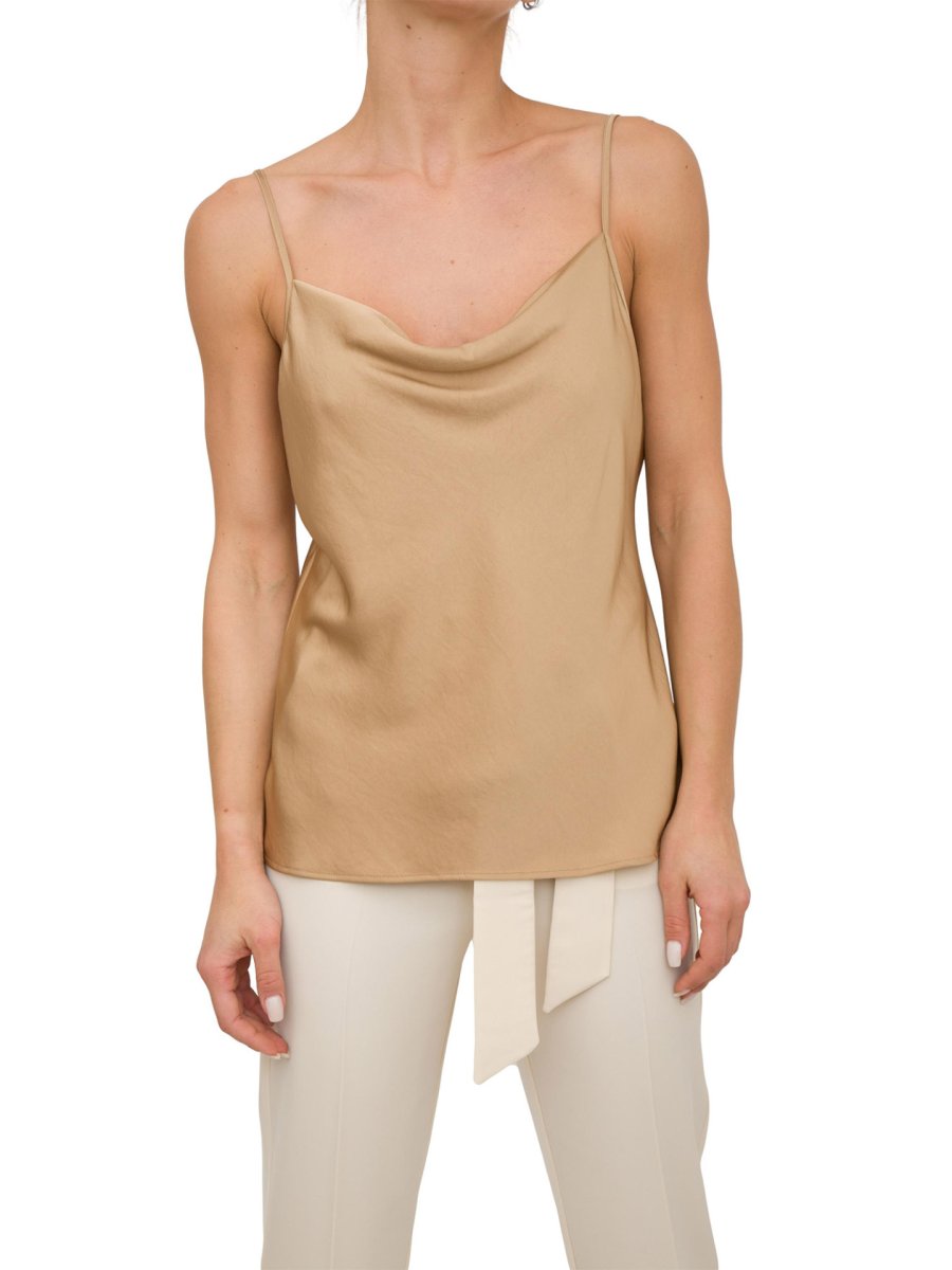 Top lingerie in raso, linea dritta. Scollo morbido, spallini sottili.
