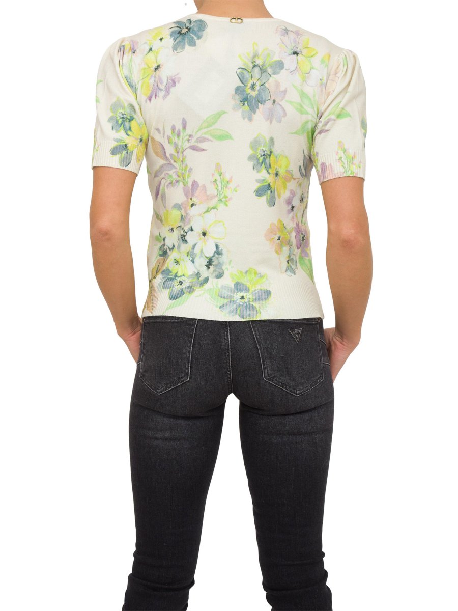 Maglia da donna TWINSET realizzata in viscosa con stampa floreale. Collo a giro e maniche corte. Logo Oval T sul retro.