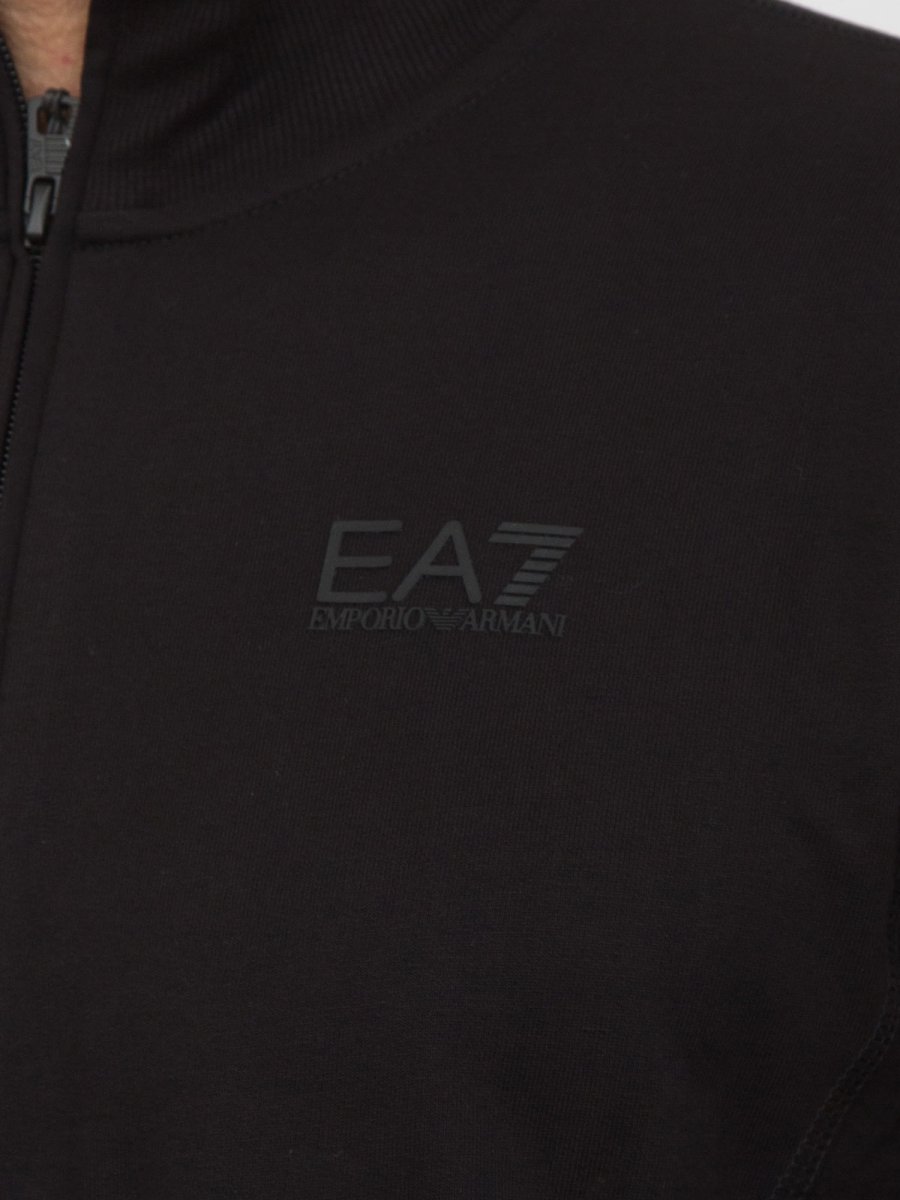 Спортивний костюм у строгому та зручному стилі, що складається з толстовки з високим коміром та застібкою-блискавкою по всій довжині, а також брюк-джоггерів з еластичним поясом та бічними кишенями. Модель виконана з м'якої бавовни та персоналізована контрастним логотипом EA7 на спині толстовки, що робить виріб миттєво впізнаваним.