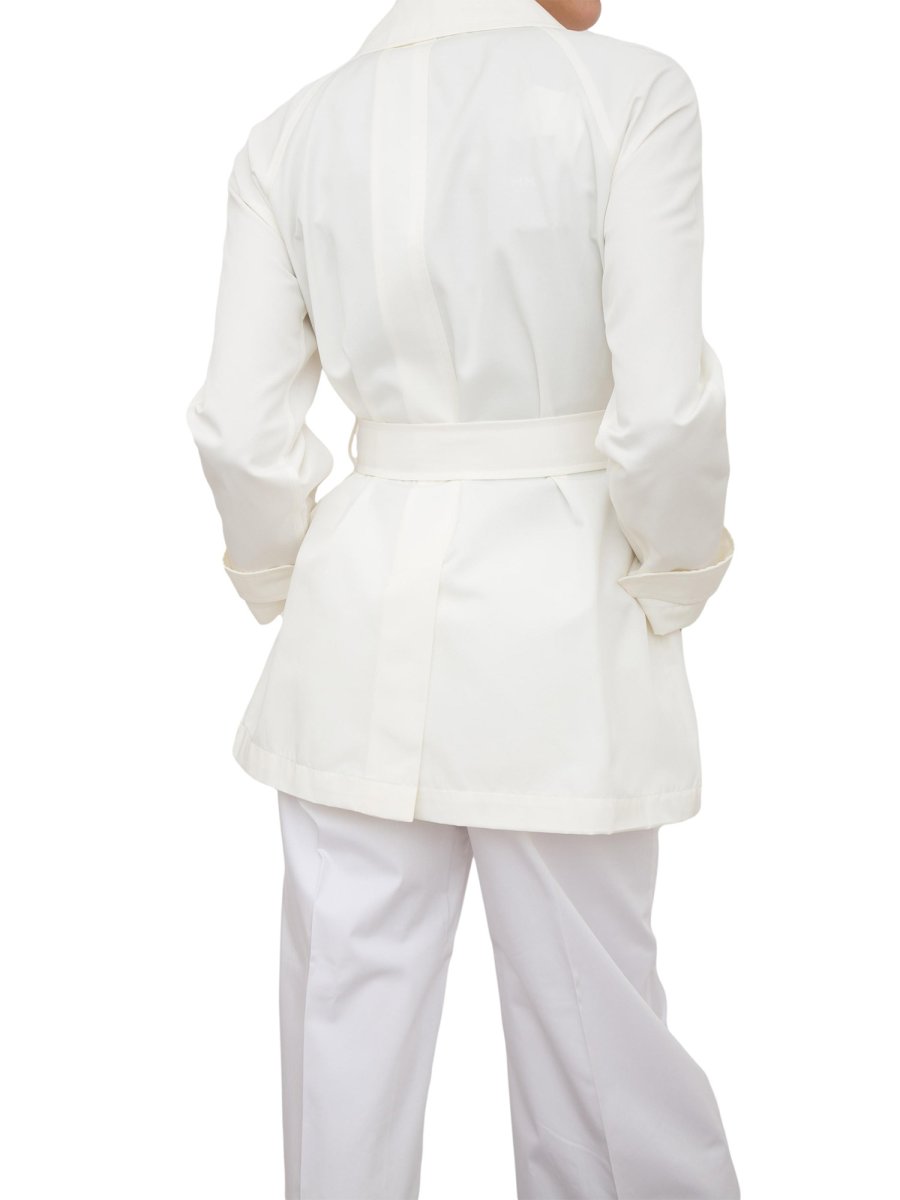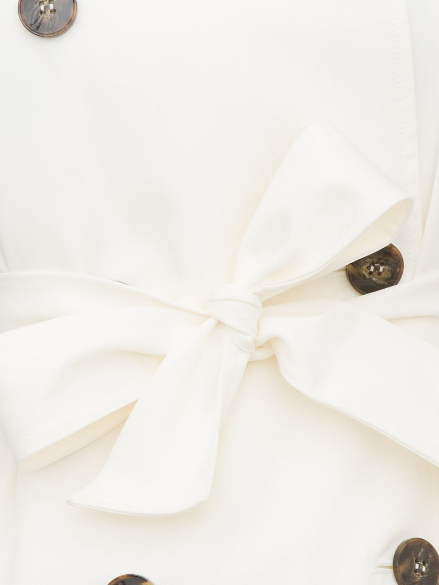 Trench corto realizzato in gabardine antigoccia con dettaglio di impunture. Per un look contemporaneo e femminile con la cintura che delinea la silhouette.