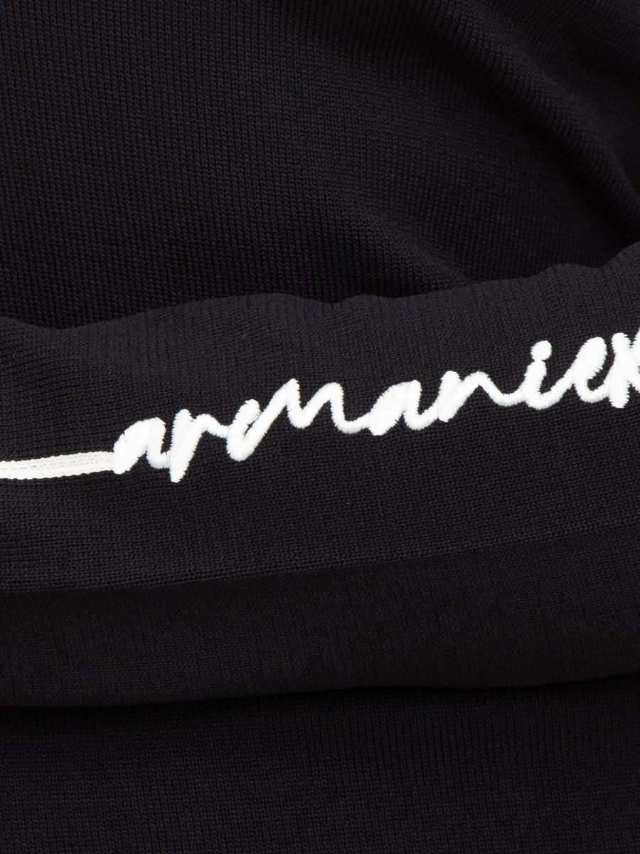 Abito donna Armani Exchange lungo, realizzato in nylon viscosa lavorato a maglia elasticizzata. Scollo rotondo, colletto e maniche lunghe.