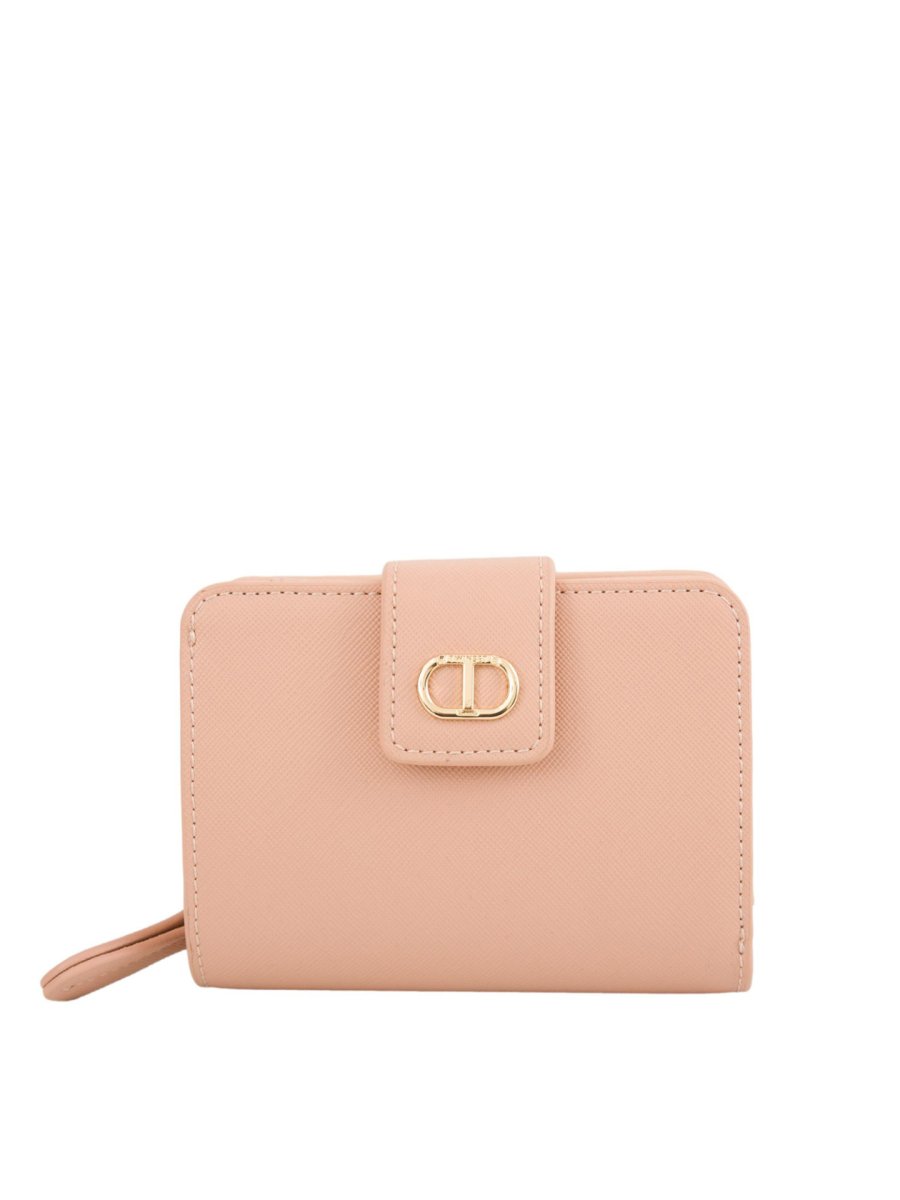 Гаманець з ефектом шкіри із саф'яновою текстурою та захистом від подряпин, застібка на ремінці та металевій кнопці овальної Т, кишеня для монет на блискавці, внутрішнє відділення з відділенням для кредитної картки та відділенням для документів.